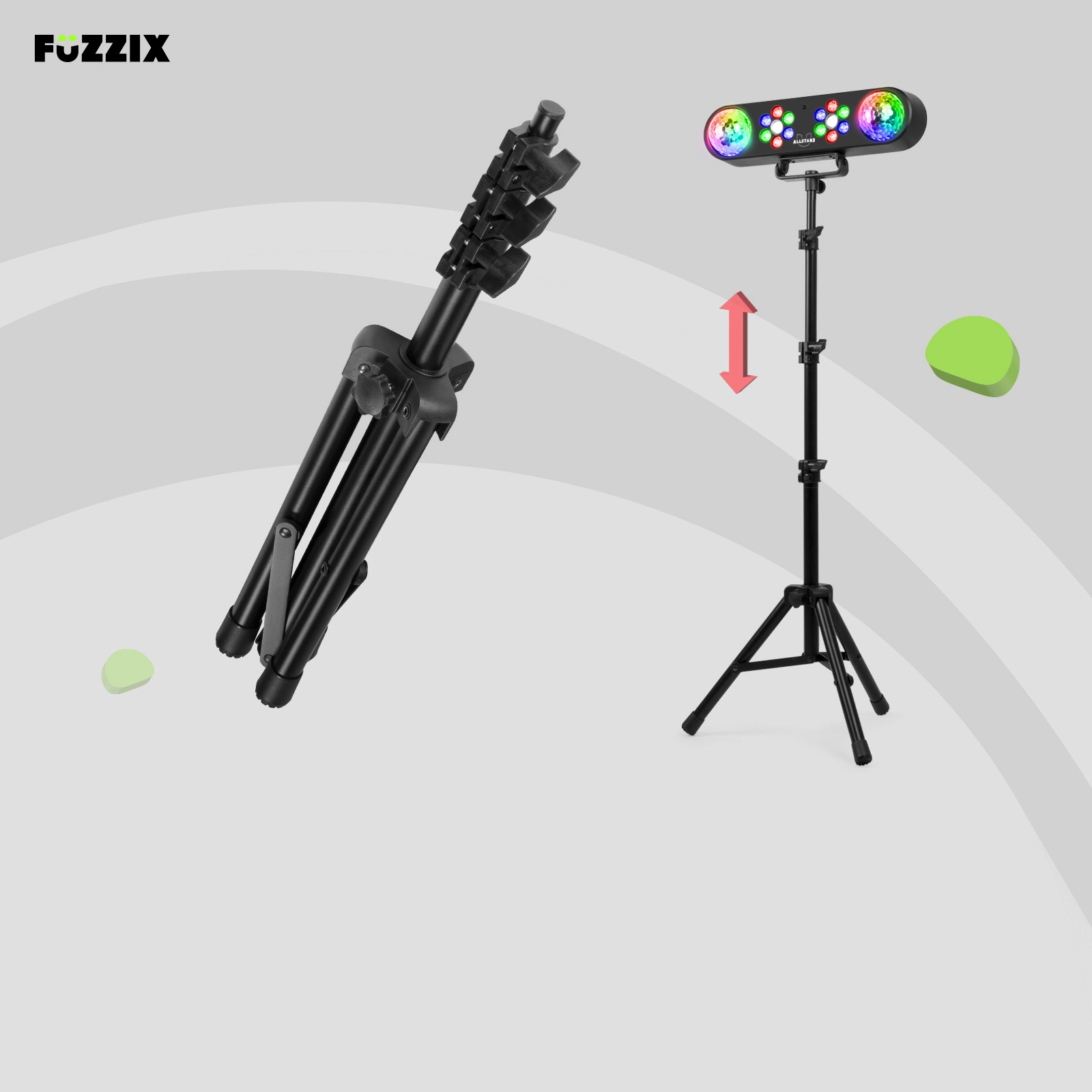Dzięki czemu zawsze możesz go postawić gdzie potrzebujesz. Statyw ma maksymalną wysokość 165cm, dzięki czemu lampa dyskotekowa idealnie sprawdzi się w asortymencie mobilnego DJa. W zestawie znajduje się także dodatkowy wspornik do zawieszenia na przykład na teowniku, lekkim mostku lub na suficie.