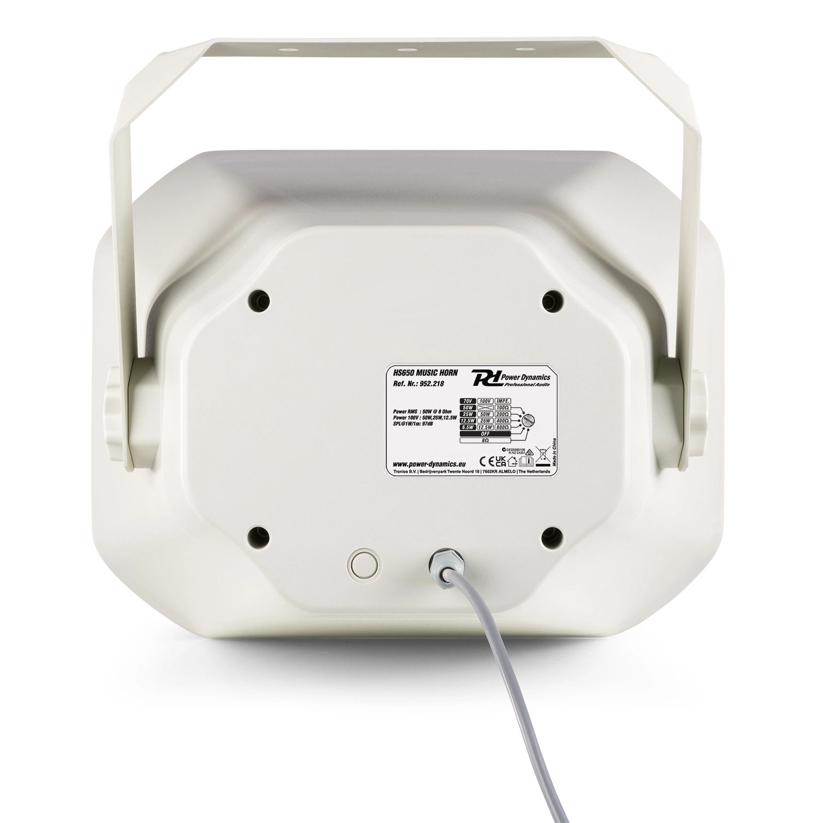 HS650 to 2-drożny, pełnozakresowy wielofunkcyjny głośnik tubowy, który dzięki stożkowej konstrukcji gwarantuje niezwykle szeroką dyspersję. Został zaprojektowany, aby zapewnić wysokiej jakości, pełnozakresową projekcję dźwięku w różnych zastosowaniach wewnętrznych i zewnętrznych. Stopień ochrony IP66 sprawia, że jest bezpieczny w użytkowaniu w każdych warunkach atmosferycznych. Do zastosowania np.: szkoły, galerie handlowe, hale fabryczne, markety budowlane, hale sportowe, stadiony i inne duże otwarte przestrzenie.