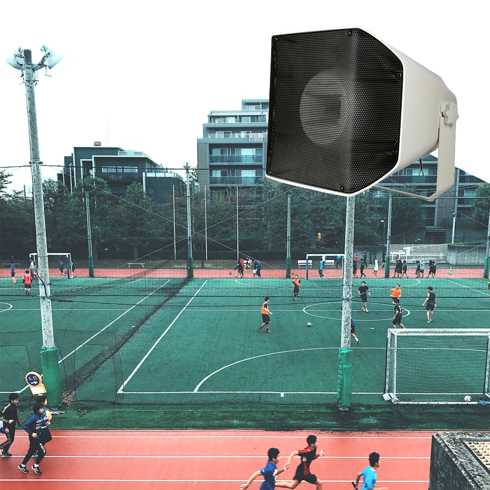 Komercyjna instalacja liniowa 100V ze wzmacniaczem i kablem głośnikowym. Ten wstępnie skonfigurowany, odporny na warunki atmosferyczne system jest idealnym rozwiązaniem dla wszystkich instalacji komercyjnych i przestrzeni publicznych, w tym sklepów, biur, magazynów, obiektów przemysłowych, placów, hal sportowych i boisk.