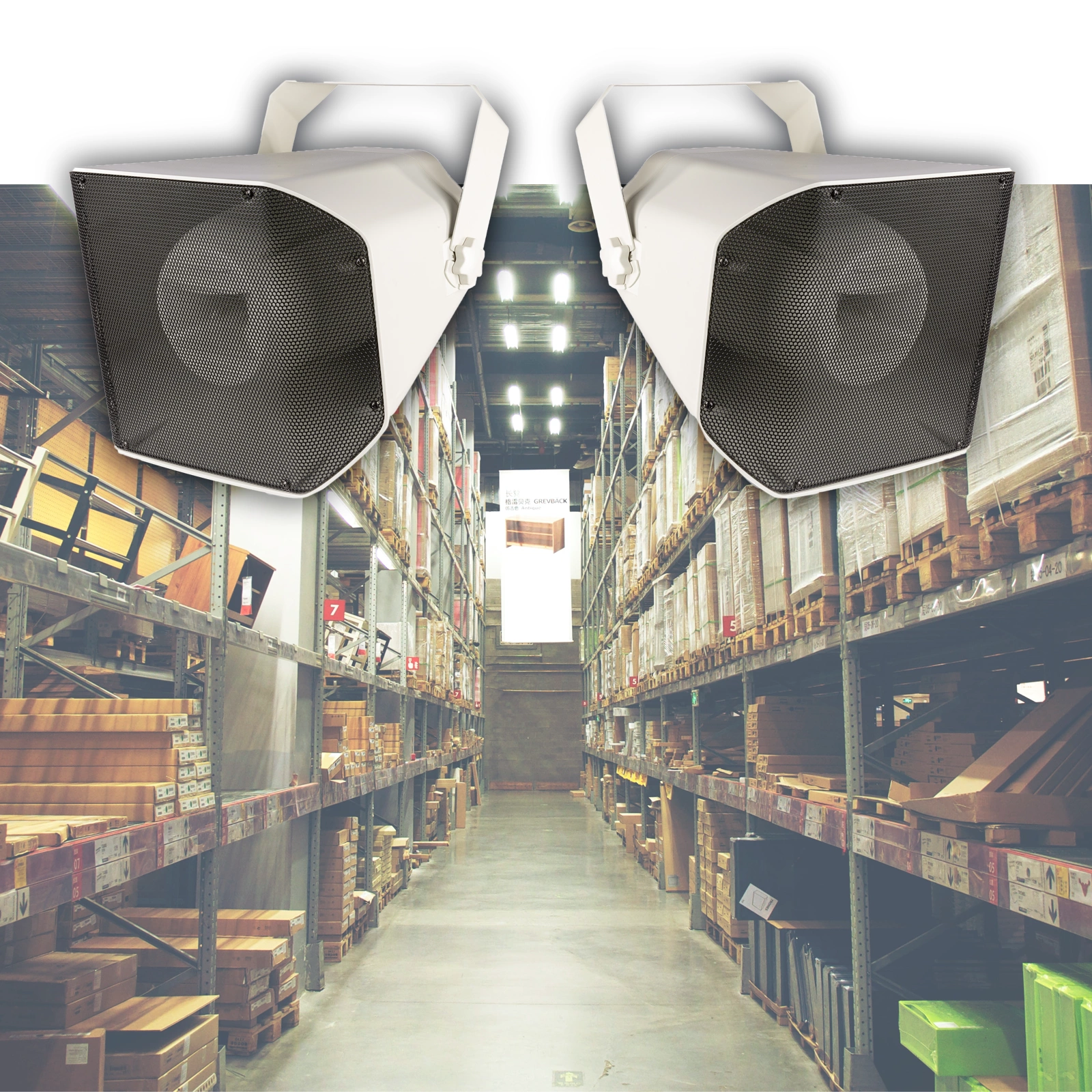 - Te głośniki doskonale nadają się do odtwarzania muzyki i komunikatów na zewnątrz, ponieważ zapewniają szerokie rozproszenie dźwięku i mocne 2-drożne wyjście