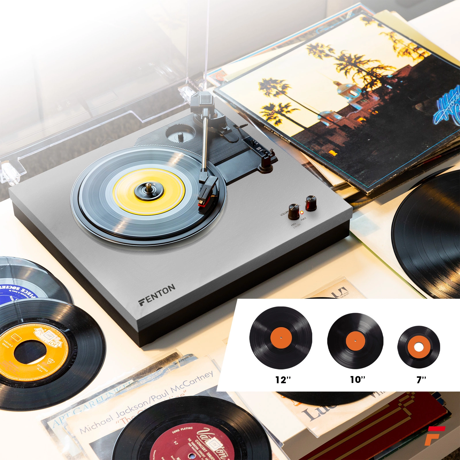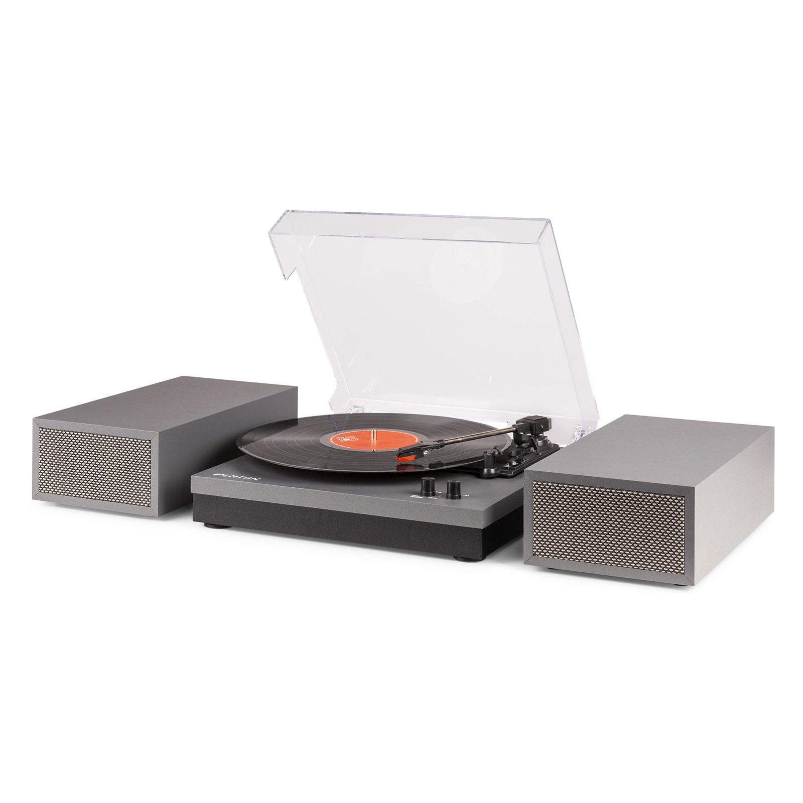 Srebrny Gramofon z głośnikami stereo BT Fenton