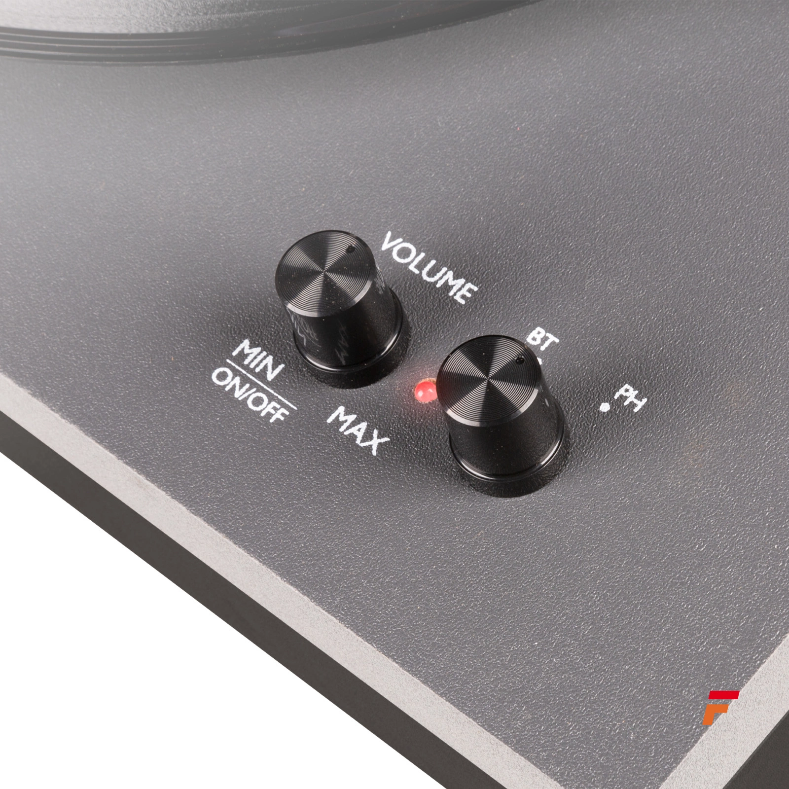Słuchaj swoich płyt winylowych z optymalnym dźwiękiem, regulując głośność na dwóch dołączonych głośnikach.