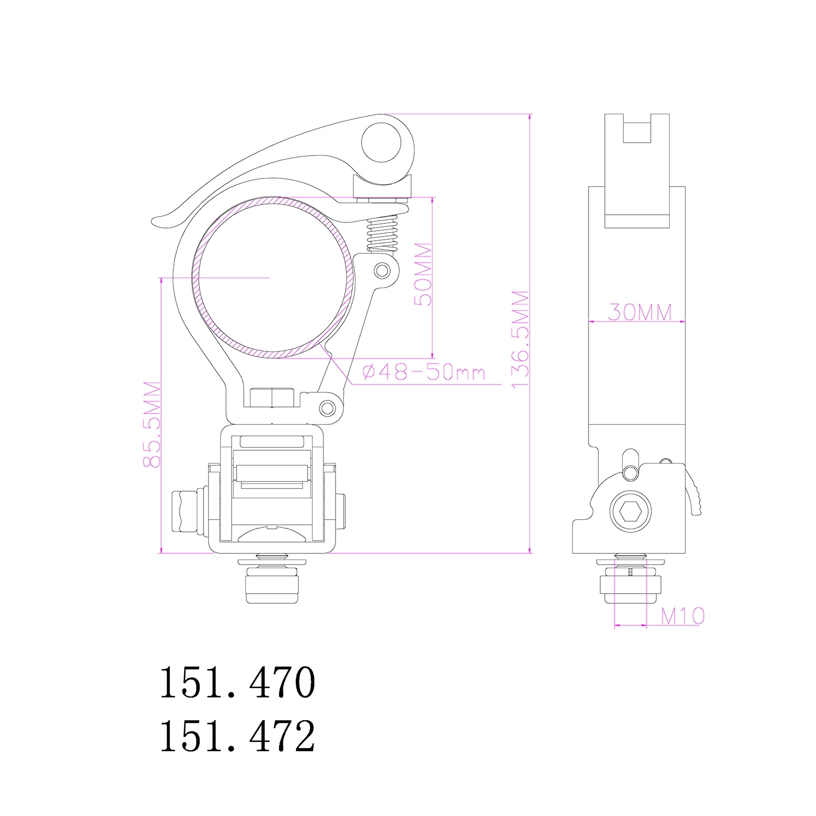 Uniwersalna kompaktowa aluminiowa półzłączka slimline do mocowania rur i kratownic. Wytrzymały zacisk do zawieszenia i przymocowania, między innymi, świateł na konstrukcję kratownicy lub rur. Zacisk jest wykonany z bardzo silnego aluminium i może przenosić masę maks. 100 kg.