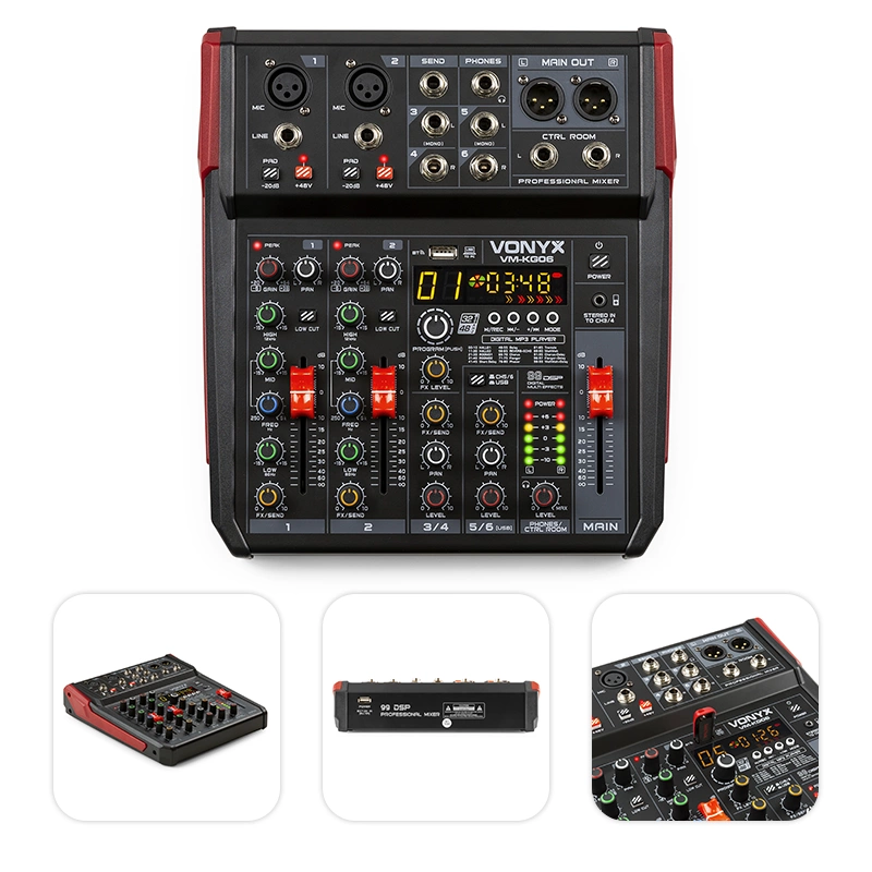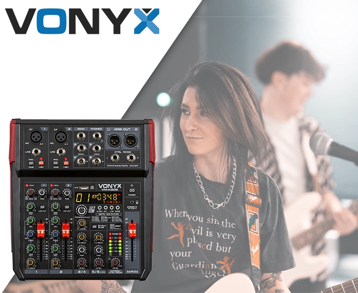 Vonyx VM-KG06 to kompaktowa, ale wszechstronna konsola miksująca do wielu zastosowań