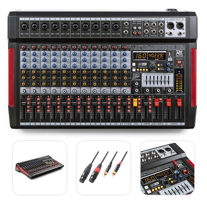 Jeśli chcesz kupić konsolę mikserską do zastosowań na żywo, takich jak zespół lub chór, do swojego (domowego) studia itp., zdecydowanie warto przyjrzeć się tej konsoli mikserskiej PDM-T1204. Ta konsola miksująca oferuje całą gamę funkcji i możliwości dla wszystkich występów na żywo i nagrań studyjnych. Bluetooth, procesor efektów z nie mniej niż 380 efektami cyfrowymi, odtwarzacz MP3, interfejs audio USB, różne kanały (zarówno mono, jak i stereo), to tylko kilka z wielu możliwości, jakie oferuje PDM-T1204. To 12-kanałowe cudo gwarantuje, że możesz wyrazić całą swoją muzyczną kreatywność. Wokale, mowa, instrumenty itp. dzięki tej konsoli mikserskiej zapewnisz doskonały i profesjonalny efekt końcowy.