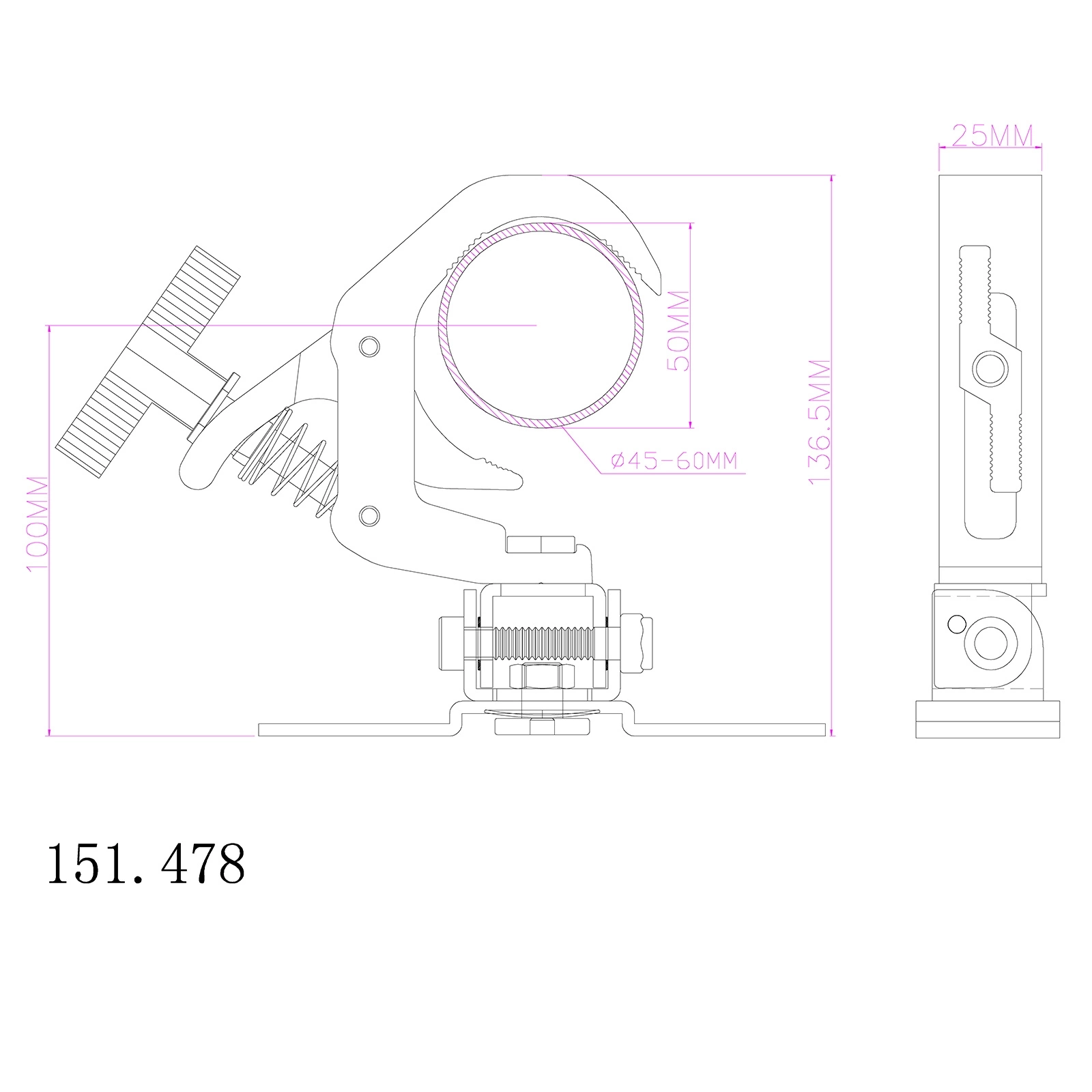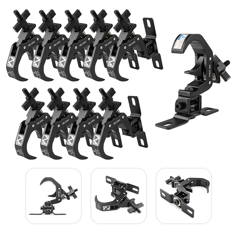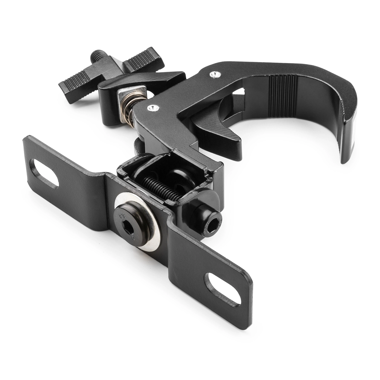 Uniwersalny uchwyt na głowicę ruchomą z systemem szybkiego zwalniania umożliwia transport ruchomych głowic z zamontowanym zaciskiem w skrzyniach transportowych dzięki unikalnemu systemowi pochylania. Zaciski te są odpowiednie dla większości modeli z ruchomą głowicą, są wykonane z odlewanego ciśnieniowo aluminium i można je łatwo zamontować na różnych systemach rurowych i kratownicowych. Wyposażony w bezpieczny i ergonomiczny uchwyt.