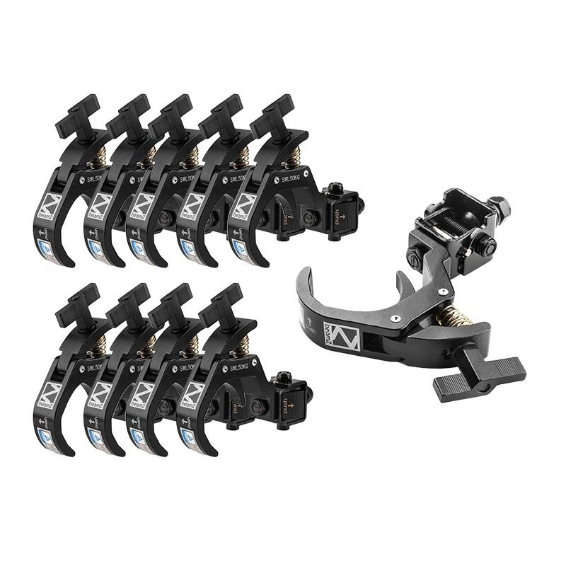 Ten odchylany zacisk Quick Trigger jest wykonany z odlewanego ciśnieniowo aluminium i nadaje się do mocowania rur i kratownic. Szeroki otwór zacisku sprawia, że zacisk nadaje się do różnych rozmiarów kratownic i rur. Unikalny system przechylania zapewnia, że zacisk może pozostać na efekt świetlny i dlatego jest łatwy do transportu w walizce lotniczej. Wyposażony w bezpieczny i ergonomiczny uchwyt.