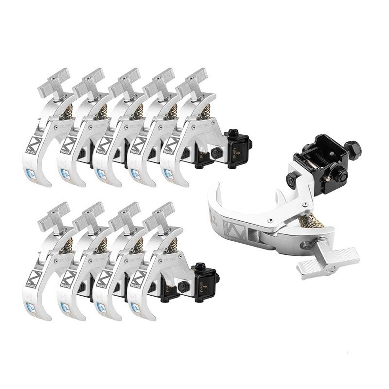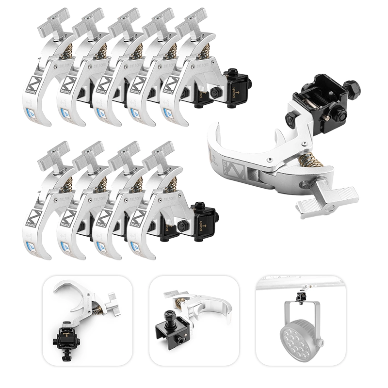 Ten odchylany zacisk Quick Trigger jest wykonany z odlewanego ciśnieniowo aluminium i nadaje się do mocowania rur i kratownic. Szeroki otwór zacisku sprawia, że zacisk nadaje się do różnych rozmiarów kratownic i rur. Unikalny system przechylania zapewnia, że zacisk może pozostać na efekt świetlny i dlatego jest łatwy do transportu w walizce lotniczej. Wyposażony w bezpieczny i ergonomiczny uchwyt.