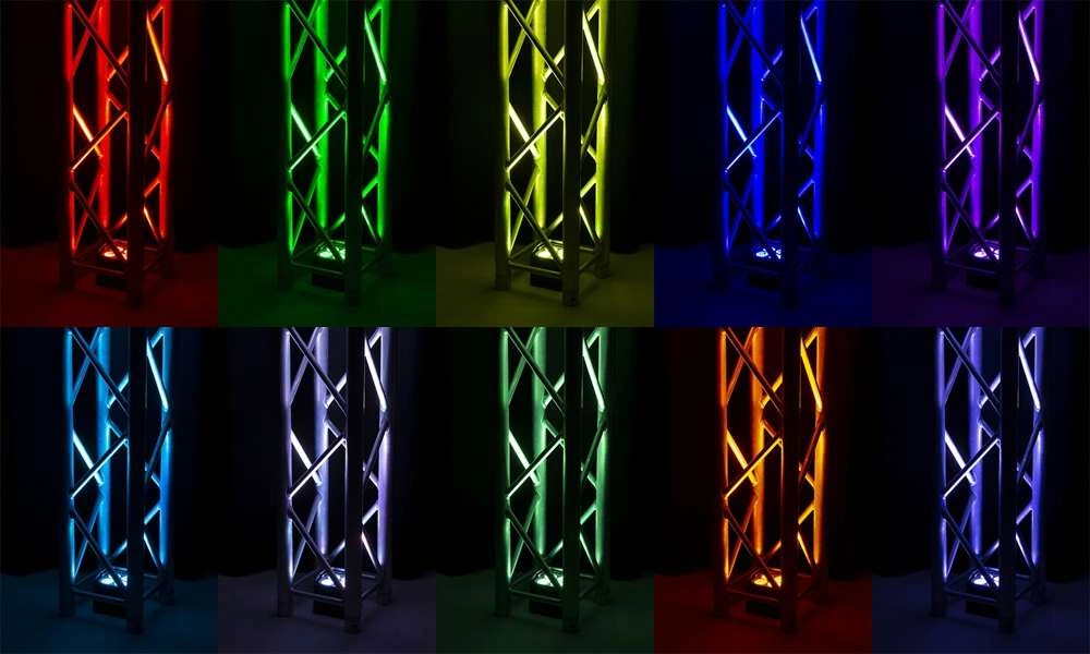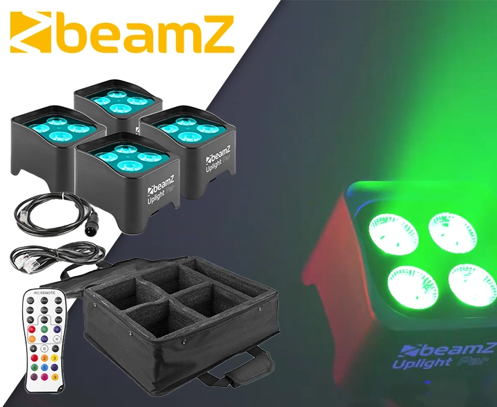 BeamZ BBP90 jest wyposażony w 4 diody LED o mocy 4W na diodę. Dzięki tej pojemności BBP90 zapewnia wystarczającą ilość światła do oświetlania drzew, krzewów, drzewostanów itp. Oczywiście intensywność światła można dowolnie regulować, aby stworzyć dowolną atmosferę. Oprócz intensywności światła kolor jest oczywiście również ważnym czynnikiem określającym atmosferę. Z BeamZ BBP90 nie brakuje kolorów, ponieważ każda dioda LED ma kolory czerwony, zielony i niebieski. Mieszając te kolory, powstają niezliczone inne opcje kolorów. Ostatnią opcją jest UV, przy czym BBP90 może również służyć jako czarne światło, dobrze znany efekt, w którym rozświetlają się białe kolory i materiały wrażliwe na promieniowanie UV. Idealny na przykład na Halloween, aby stworzyć ponurą atmosferę.