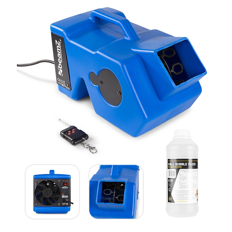 to lekka i niezawodna maszyna do baniek, która dzięki mocnemu wentylatorowi zapewnia daleki i wysoki wylot baniek, zapewniając niesamowity efekt. Maszyna wytwarza duże ilości bąbelków na minutę.