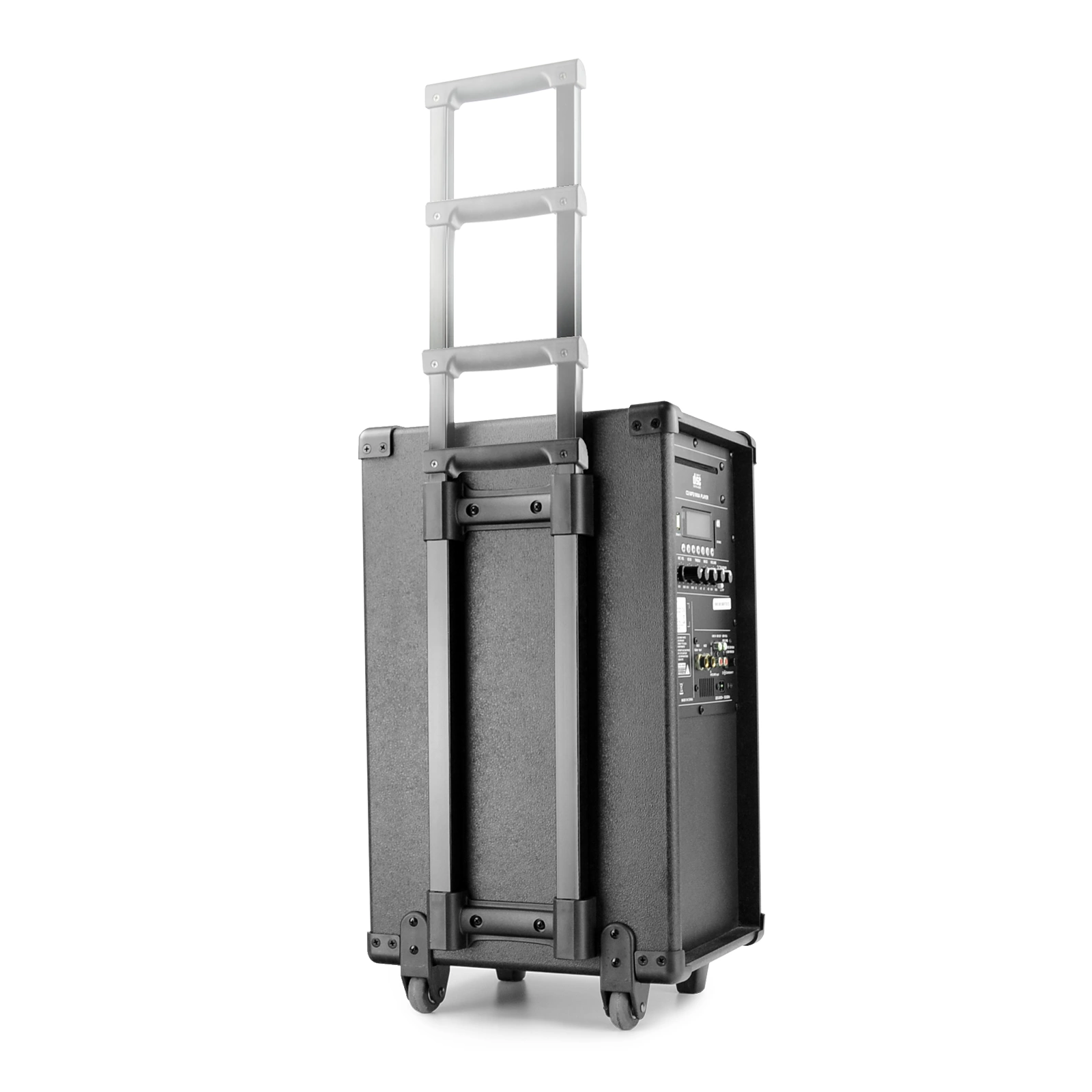 Charakteryzuje się nie tylko wbudowanym akumulatorem. To oczywiście czyni go niezwykle mobilnym, ale to nie wszystko. PORT8MINI jest wyposażony w wysuwaną rączkę i kółka, dzięki czemu możesz go łatwo zabrać ze sobą i toczyć za sobą. Idealny do codziennego użytku na targach, pokazach imprezach plenerowych klubach fitness czy po prostu do aktywnych zabaw z dziećmi.