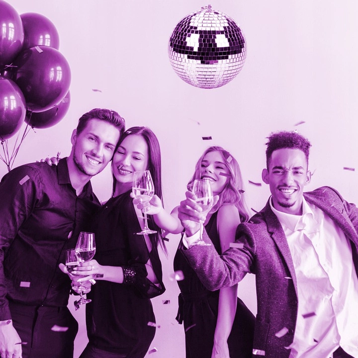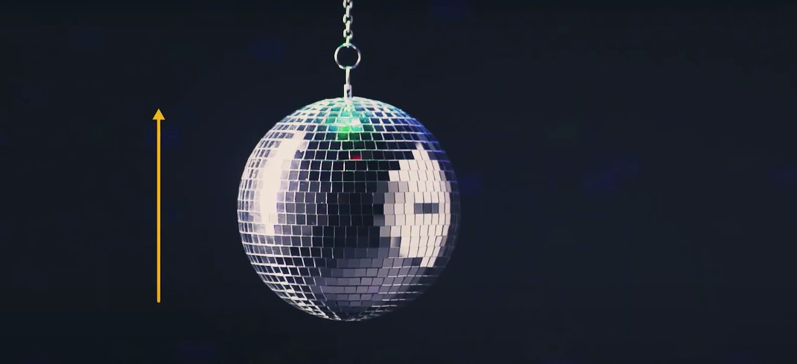 Kulę dyskotekową wystarczy przymocować do sufitu! Pierścień na szczycie kuli i 15cm łańcuszek zapewniają swobodę w umieszczeniu kuli dyskotekowej.