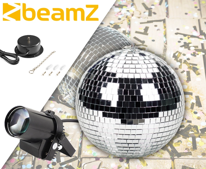 Napęd marki BeamZ to odpowiednia propozycja do kul lustrzanych o wadze do 2,5 kg i średnicy do 30cm. Silnik w napędzie jest bardzo cichy, można więc go stosować nawet w mniejszych pomieszczeniach. Napęd wyposażony został w przewód zasilający z wtyczką.