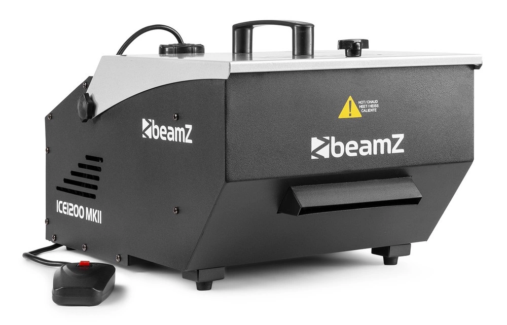 marki BeamZ to profesjonalne urządzenie o mocy 1200W, pojemności 0,5 litra i wydajnym wyrzucie dymu 125m³. Wraz z wytwornicą dostarczony jest przewodowy pilot. Jest to idealna propozycja do klubów, sal weselnych, na imprezy i potańcówki, do teatrów, na scenę. Ciężki ciągnący się po podłodze niczym mgła, dym jest niesamowitym efektem, który można wykorzystać podczas np. pierwszego tańca. Oprócz płynu wytwornicę napędza lód czy to w kostkach czy w formie suchej. To on powoduje, że wytwarzany dym trzyma się nisko ponad podłoga i przypomina mgłę.
