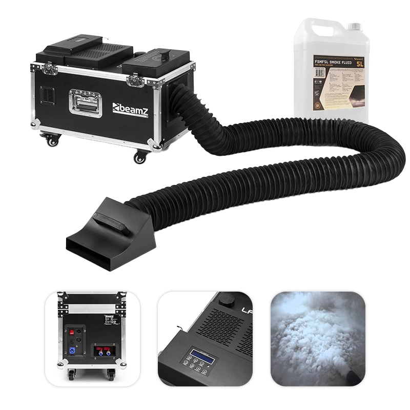 Maszyna BeamZ LF1500 została wyposażona w 5-litrowy zbiornik na płyn do dymu, co zapewnia długotrwałą pracę bez konieczności częstego uzupełniania. Urządzenie nagrzewa się w około 8 minut, a następnie jest gotowe do ciągłego generowania efektownego, gęstego dymu unoszącego się nisko nad podłogą.