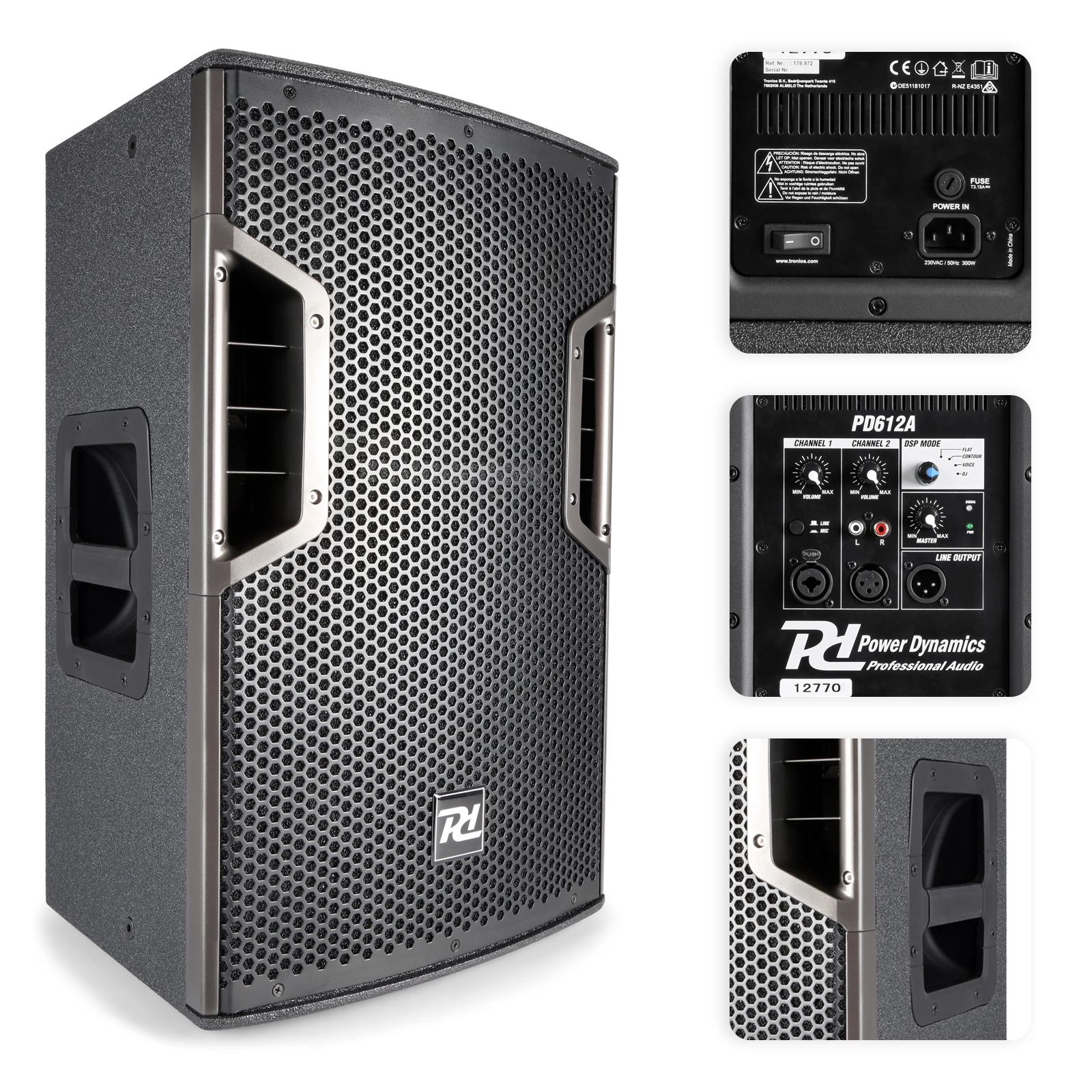 Oznacza to, że głośnik niskotonowy i wysokotonowy są sterowane oddzielnie. Daje to lepszą kontrolę nad głośnikiem niskotonowym i wysokotonowym, co poprawia dźwięk. Wbudowany moduł DSP zapewnia, że ten głośnik brzmi optymalnie w każdym środowisku. Dzięki 4 ustawieniom uzyskasz dźwięk tak, jak chcesz. Wbudowany limiter zapewnia zabezpieczenie przed przesterowaniem i zniekształceniem dźwięku. Pod względem połączeń PD612A jest wyposażony w dwa wejścia liniowe, gdzie możliwe jest nawet podłączenie mikrofonu bezpośrednio na kanale 1. Na przykład PD612A może być również używany do wzmacniania mowy podczas prezentacji i przemówień. Ponadto PD612A jest idealny do użytku przez DJ-ów i innych większych imprez.