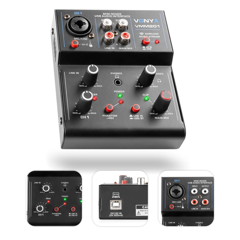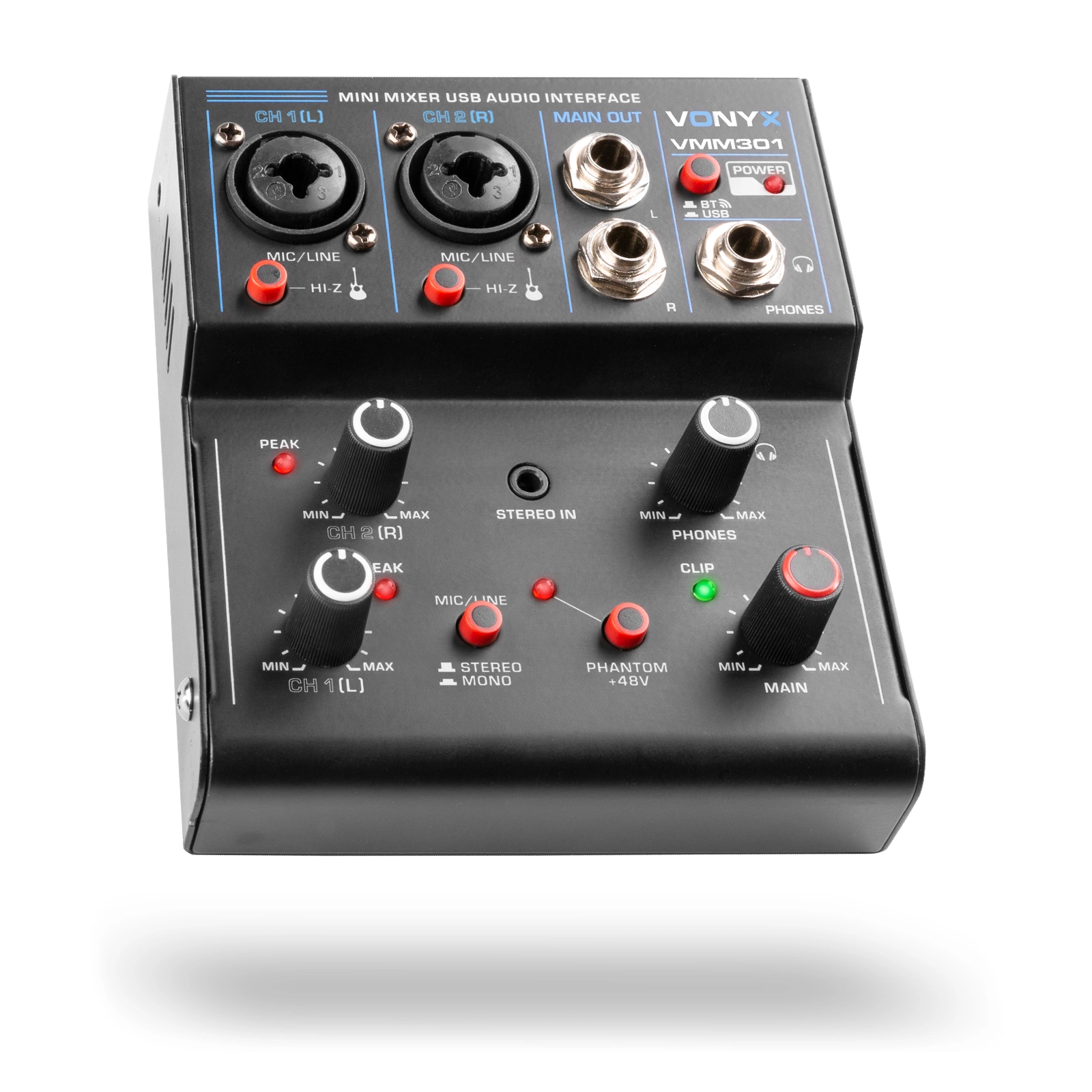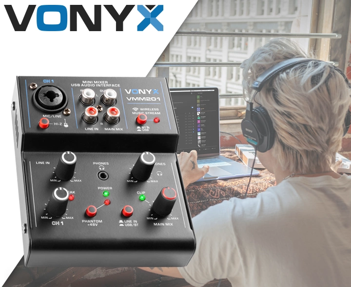 Do nagrywania podcastu, instrumentu lub wokali, to Vonyx VMM201 jest dokładnie tym, czego szukasz. Możesz podłączyć tę małą konsolę miksującą do komputera lub laptopa przez USB, dzięki czemu możesz szybko zacząć. Do wykonywania wysokiej jakości nagrań wyposażony jest w zasilanie phantom, dzięki czemu możliwe jest również podłączenie mikrofonu pojemnościowego (zwykle mikrofon studyjny). Ponadto mikser jest wyposażony w Bluetooth, na przykład do bezprzewodowego przesyłania muzyki do miksera. Krótko mówiąc, dzięki Vonyx VMM201 możesz w mgnieniu oka stworzyć pełnowartościowe domowe studio do wszelkiego rodzaju nagrań.