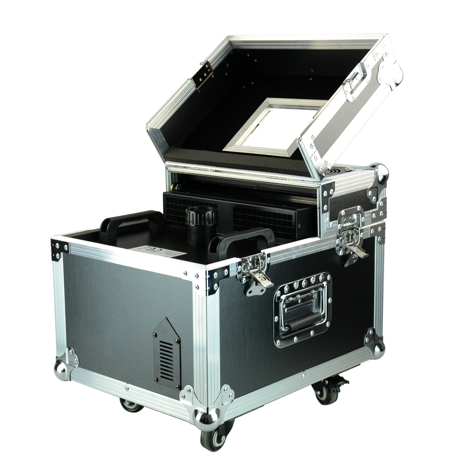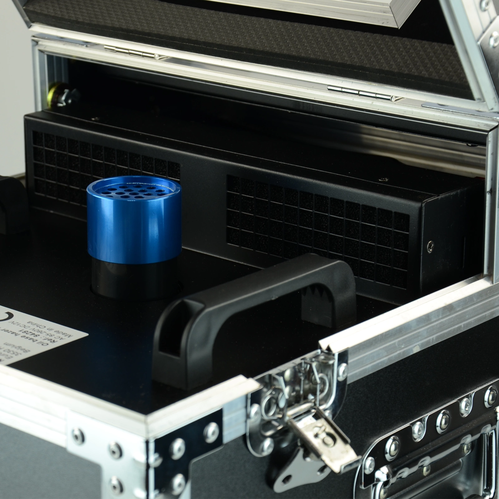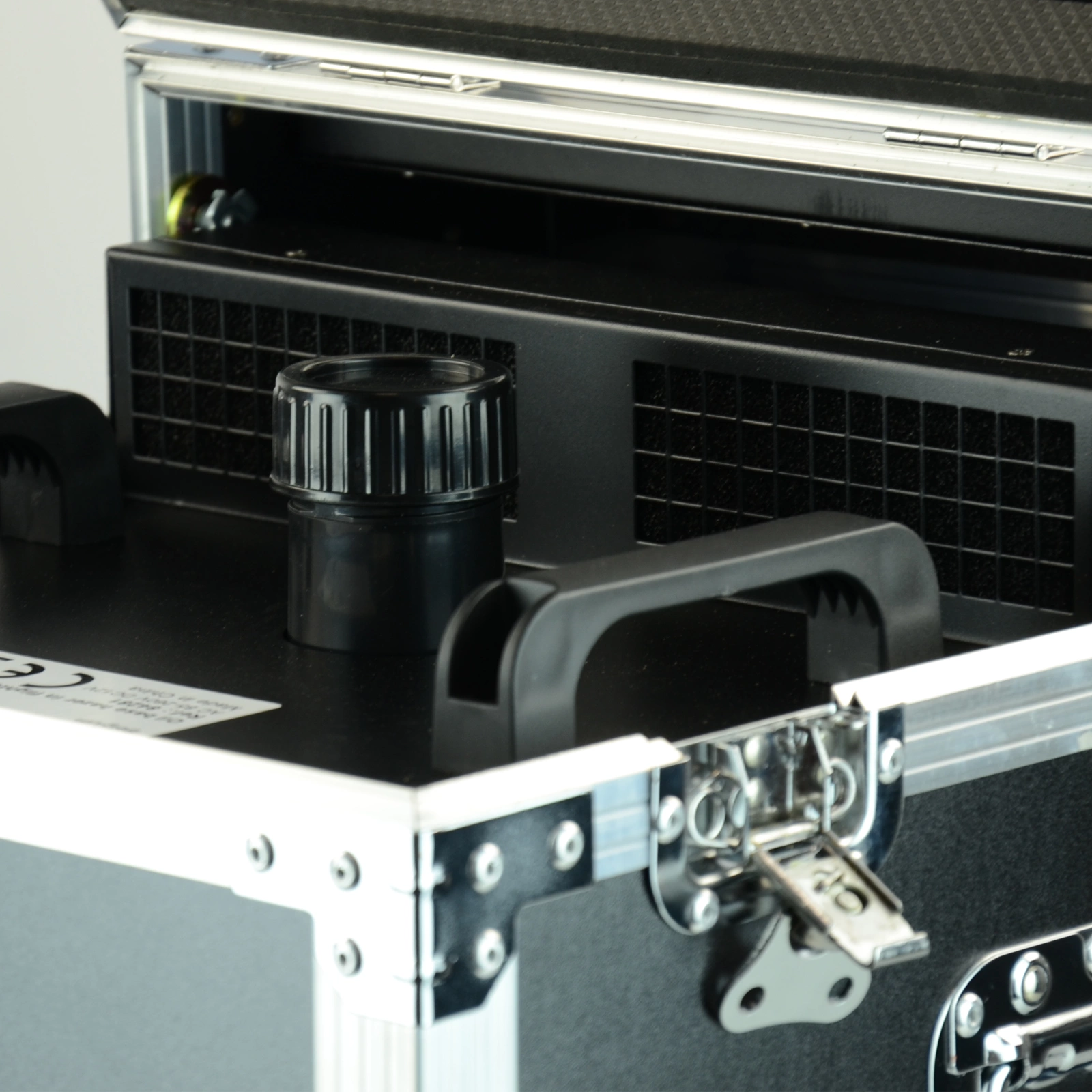 Hazer jest właściwie sam w sobie walizką transportową. Dzięki temu maszyna jest łatwa do przenoszenia i od razu nadaje się do zastosowań „w trasie”, na przykład w sektorze wynajmu. Pokrywa jest zdejmowana w 2 częściach, aby uzyskać dostęp do dyszy z jednej strony i dostęp do elementów sterujących z drugiej.