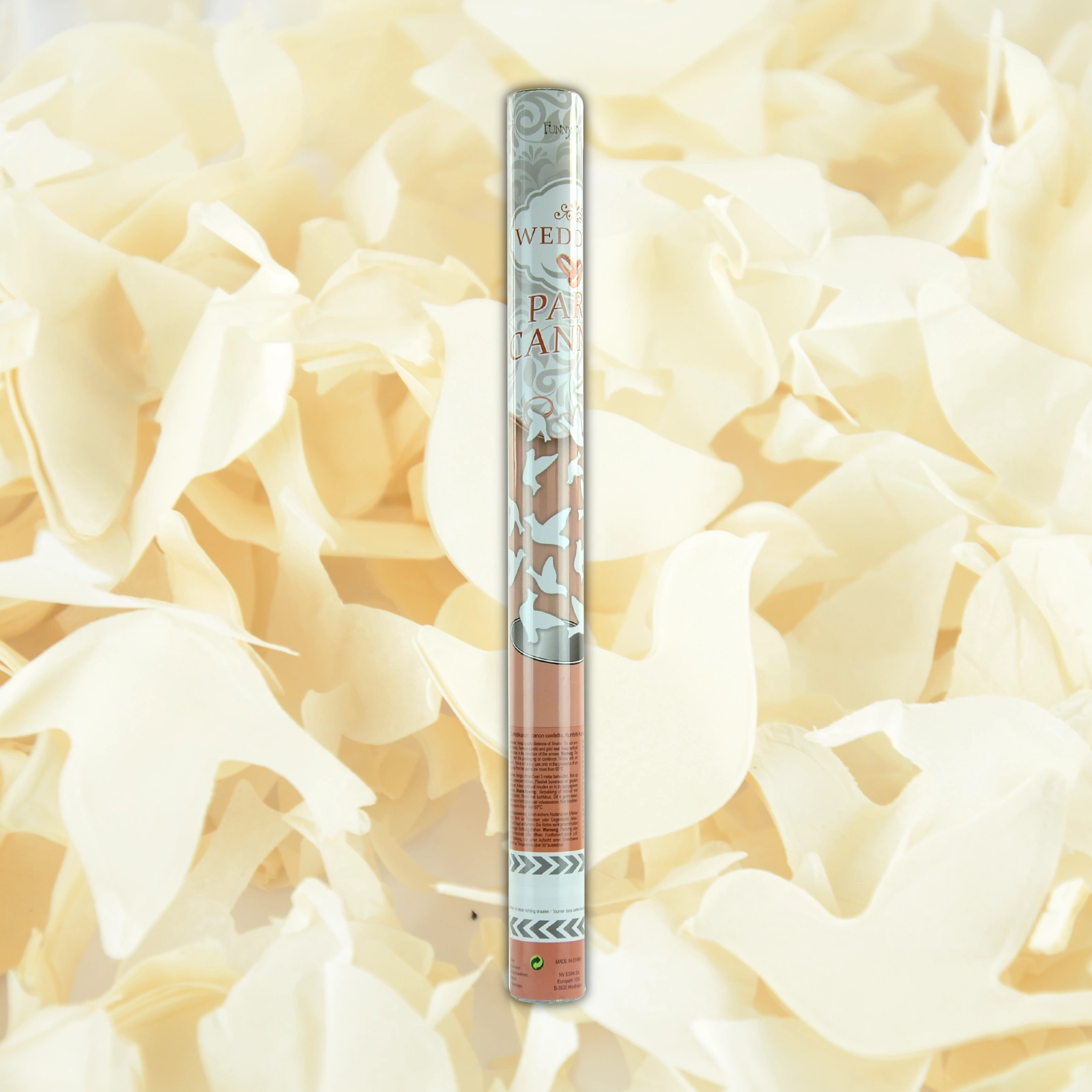 Tuba wyrzutnia konfetti 60 cm - białe gołębie