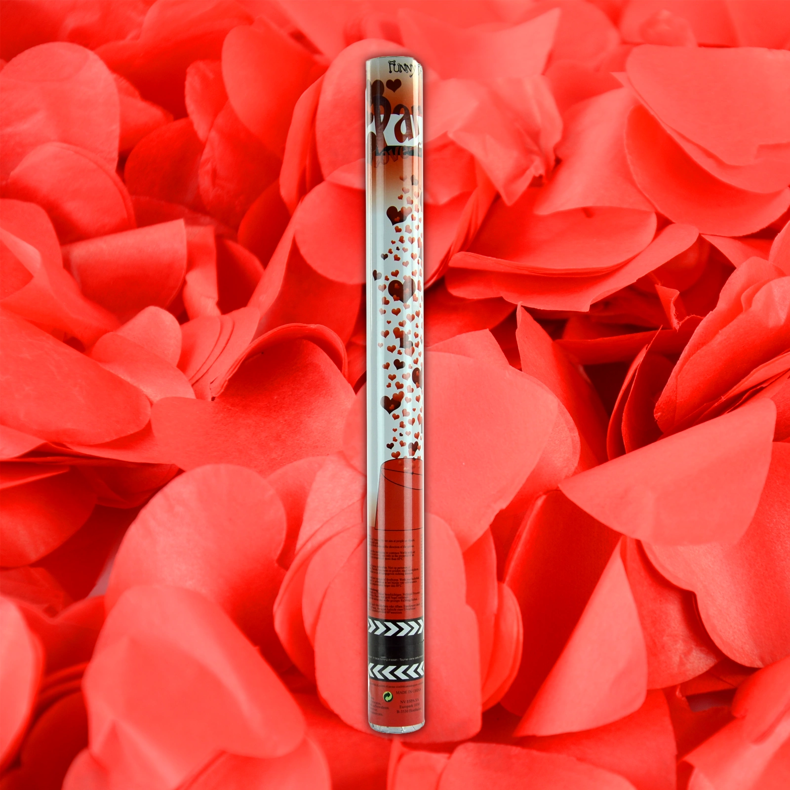 Wspaniałe strzelające tuby z serduszkami w kolorze czerwonym to cudowna atrakcja podczas wesela, imprezy urodzinowej, wieczoru panieńskiego, sylwestra, rocznicy, zaręczyn czy walentynek.