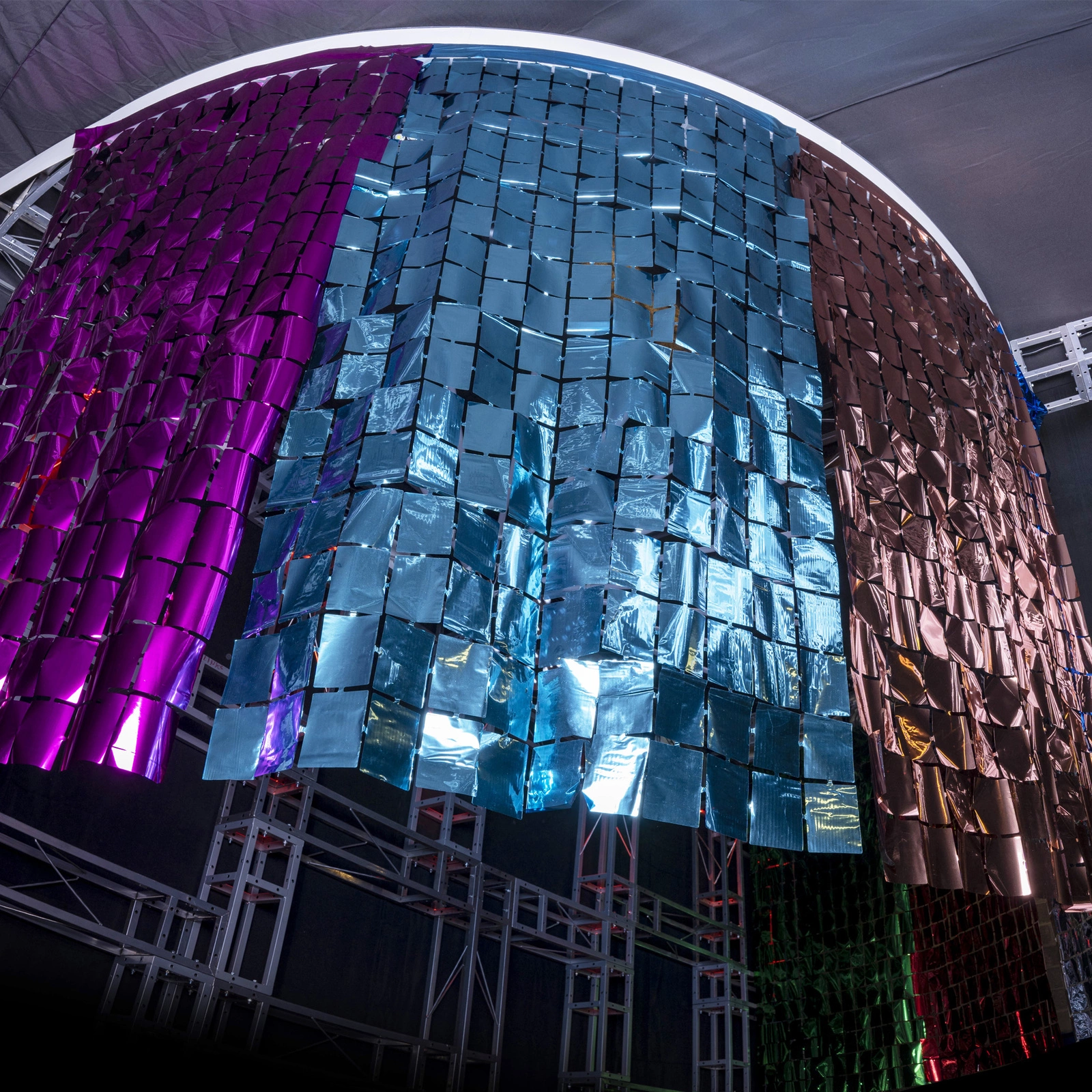 Gadżet został wykonany z wysokiej jakości metalicznej folii. Jej główną ozdobę stanowią efektownie błyszczące kwadraty Można zamocować ją w oknie lub na ścianie tworząc dowolne kompozycje aranżacyjne. Kołyszące się, połyskujące kwadraty stanowią spektakularny efekt. Dodatkowo, kurtyna jest świetnym tłem do zdjęć pamiątkowych z imprezy.