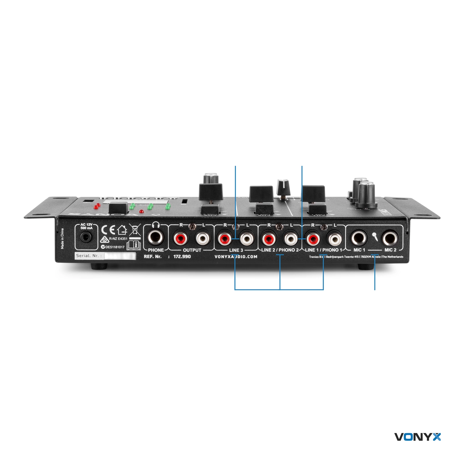 STM3030 marki Vonyx to 4-kanałowy mikser dla DJ'a. Posiada wejście na USB oraz karty SD, dzięki czemu można muzykę puszczać bezpośrednio z tego urządzenia. Wyposażony został w odbiornik Bluetooth, możne więc przesyłać muzykę z urządzeń mobilnych, tabletów i telefonów posiadających tą technologię. Dodatkowo każdy utwór może być też zapisany na USB lub SD dzieki wbudowanej opcji nagrywania.