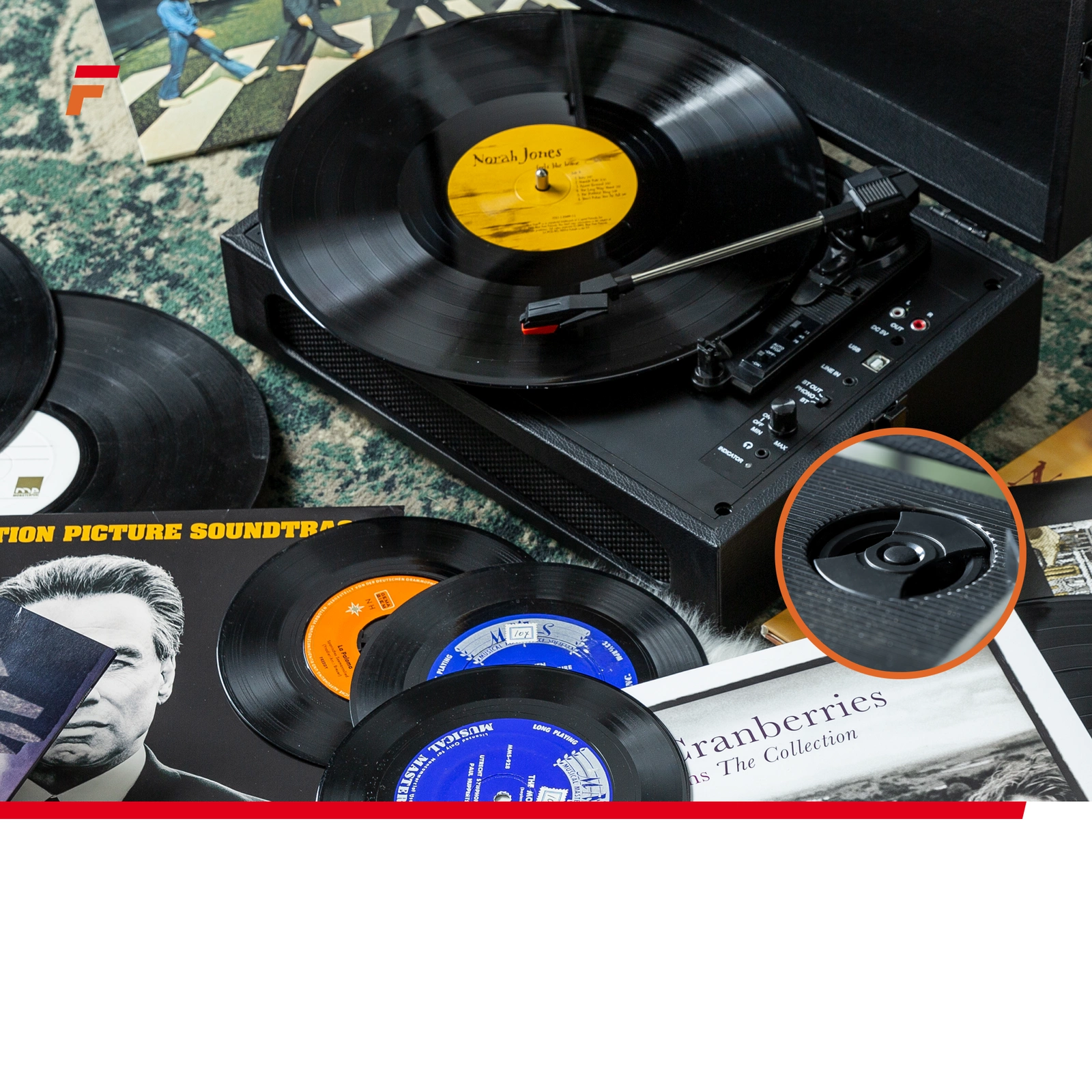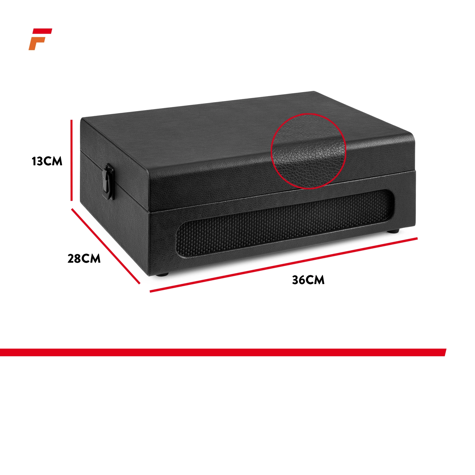 Ciesz się autentycznym dźwiękiem winylu i odtwarzaj wszystkie najlepsze płyty za pomocą gramofonu Fenton RP118. Gramofon z trzema prędkościami może odtwarzać płyty z prędkością 33, 45 i 78 obr./min i ma nowoczesne wykończenie ze skóry PU z dogodną lekką konstrukcją, dzięki czemu jest łatwy do przenoszenia, dzięki czemu można go zabrać ze sobą, gdziekolwiek jesteś. Łączy się bezprzewodowo z głośnikami, słuchawkami i innymi urządzeniami wyposażonymi w technologię bezprzewodową BT lub z przewodowymi systemami audio i aktywnymi głośnikami. Dzięki wbudowanemu odbiornikowi BT cyfrowa muzyka może być również przesyłana strumieniowo bezprzewodowo ze smartfonu, tabletu PC lub innego urządzenia kompatybilnego z BT i może być słuchana przez głośniki stereo.