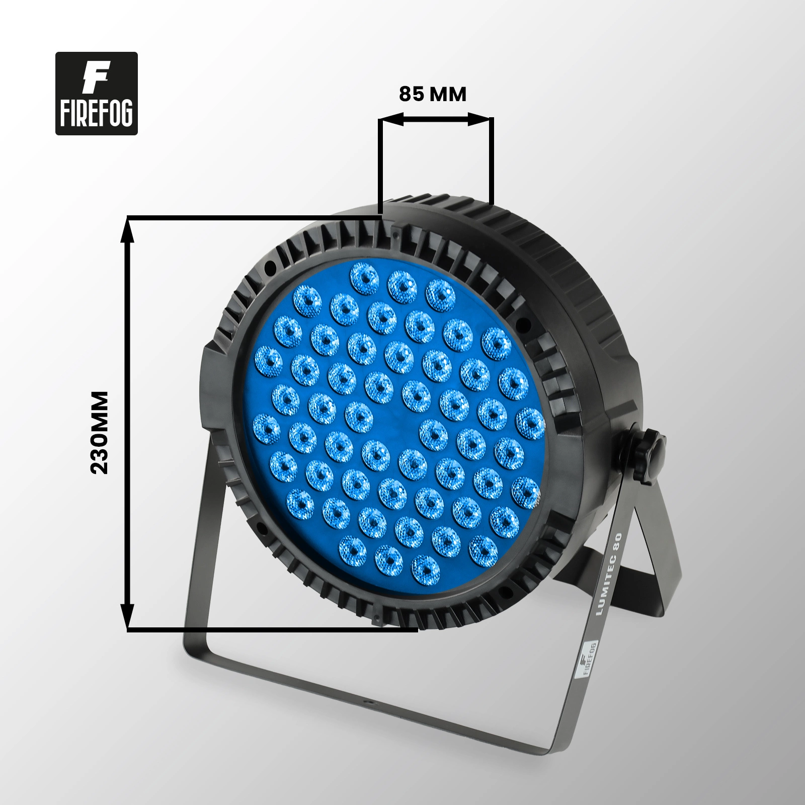 Reflektor LED PAR RGB Lumitec 80 Firefog wyposażony jest w 54 mocne diody Lumiled 1.5W RGB 3in1 LED, które zapewniają: