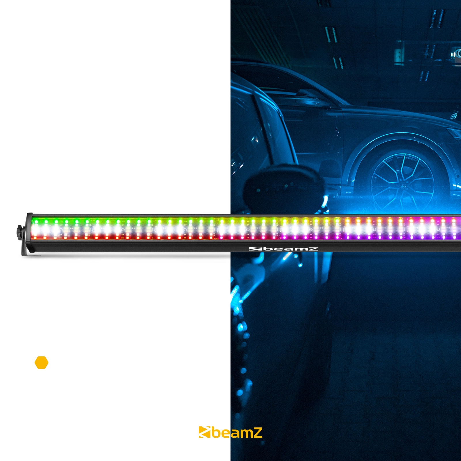 Oprócz sterowania DMX, LCB288 firmy BeamZ posiada automatyczny program zarówno dla diod LED RGB, jak i funkcji stroboskopu, oba regulowane w różnych prędkościach. Ponadto możesz także wybrać jeden z 12 zaprogramowanych programów lub funkcję Slave. Wyświetlacz z tyłu paska umożliwia ustawienie różnych trybów i prędkości. Dzięki temu LCB288 jest bardzo łatwy w obsłudze.
