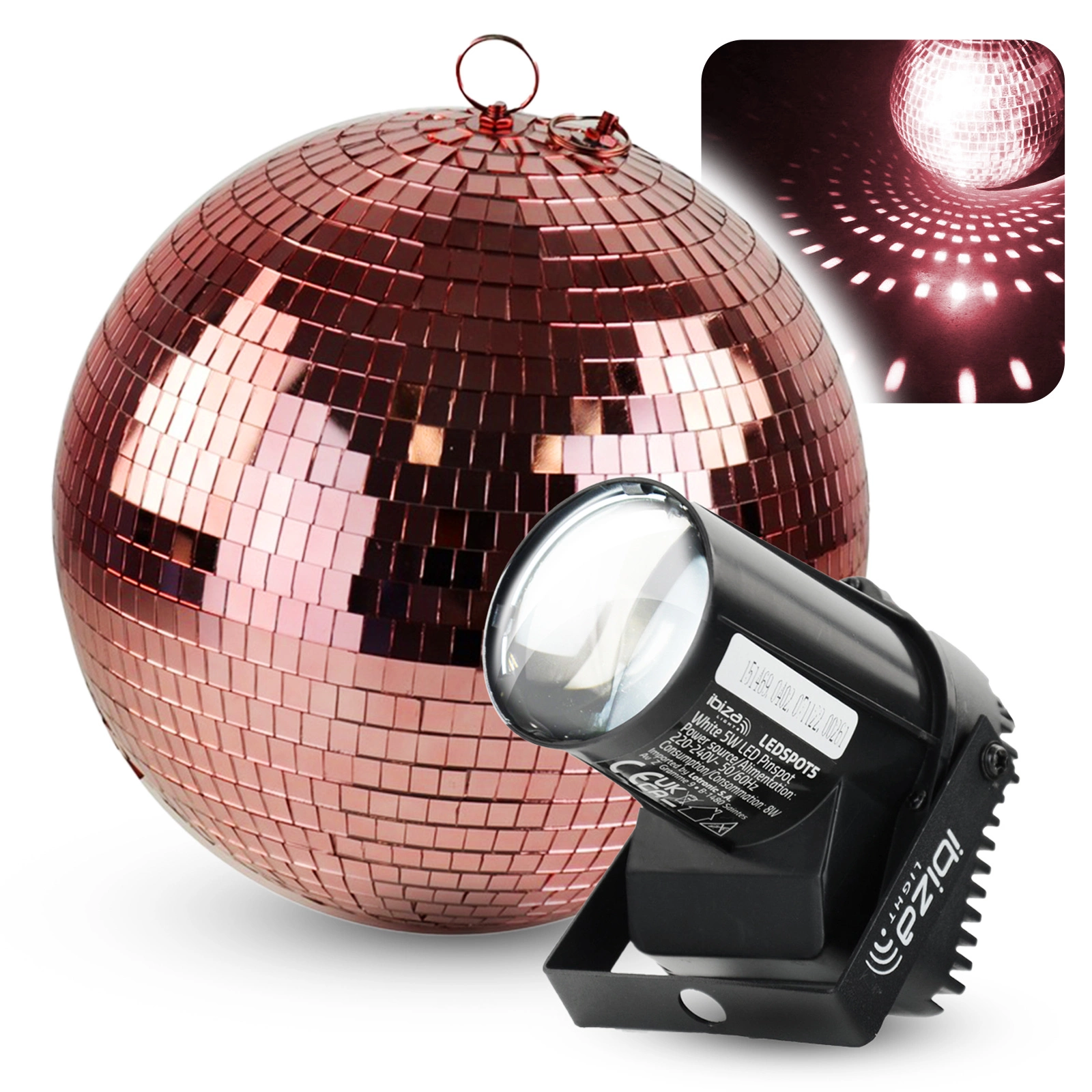 Zestaw Kula LUSTRZANA 20cm dyskotekowa RÓŻOWA sala taneczna+ Pinspot LED