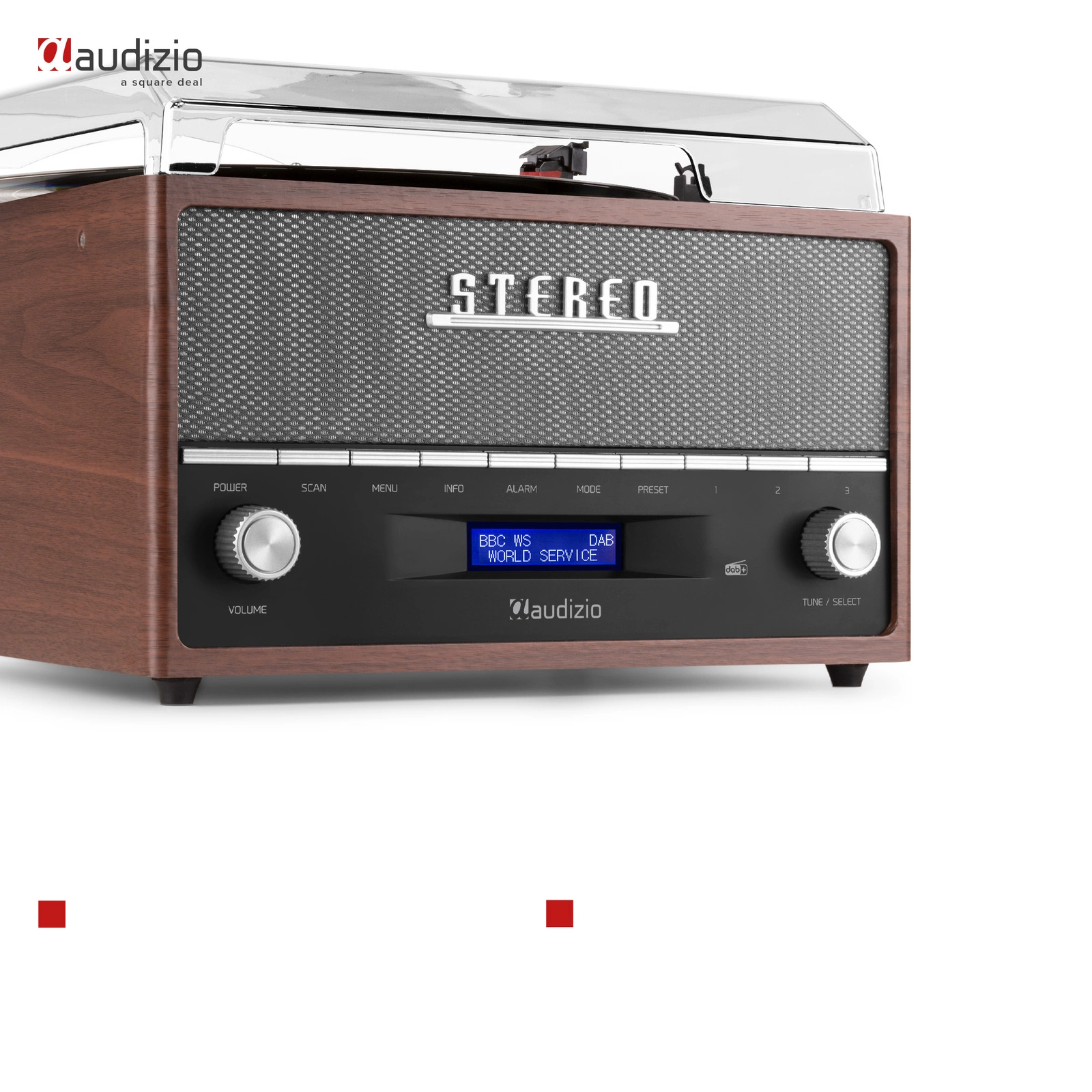 Frisco to prawdziwy gramofon retro, ale z pewnością nadąża za duchem czasu dzięki wbudowanemu radiu DAB+. 20 zaprogramowanych stacji (10 FM i 10 DAB) umożliwia zapisanie ulubionych stacji radiowych i odtwarzanie ich za naciśnięciem jednego przycisku. Radia można także używać jako radiobudzika, ustawiając budzik. Można ustawić 2 różne budziki, wybierając dzienny, konkretny dzień, weekend lub jednorazowy.
