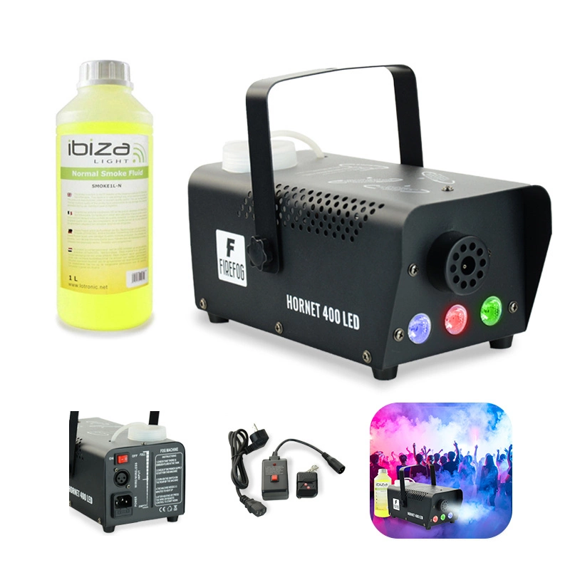 Zestaw wytwornica dymu z efektem LED 400W 2 piloty+ płyn do dymu 1l