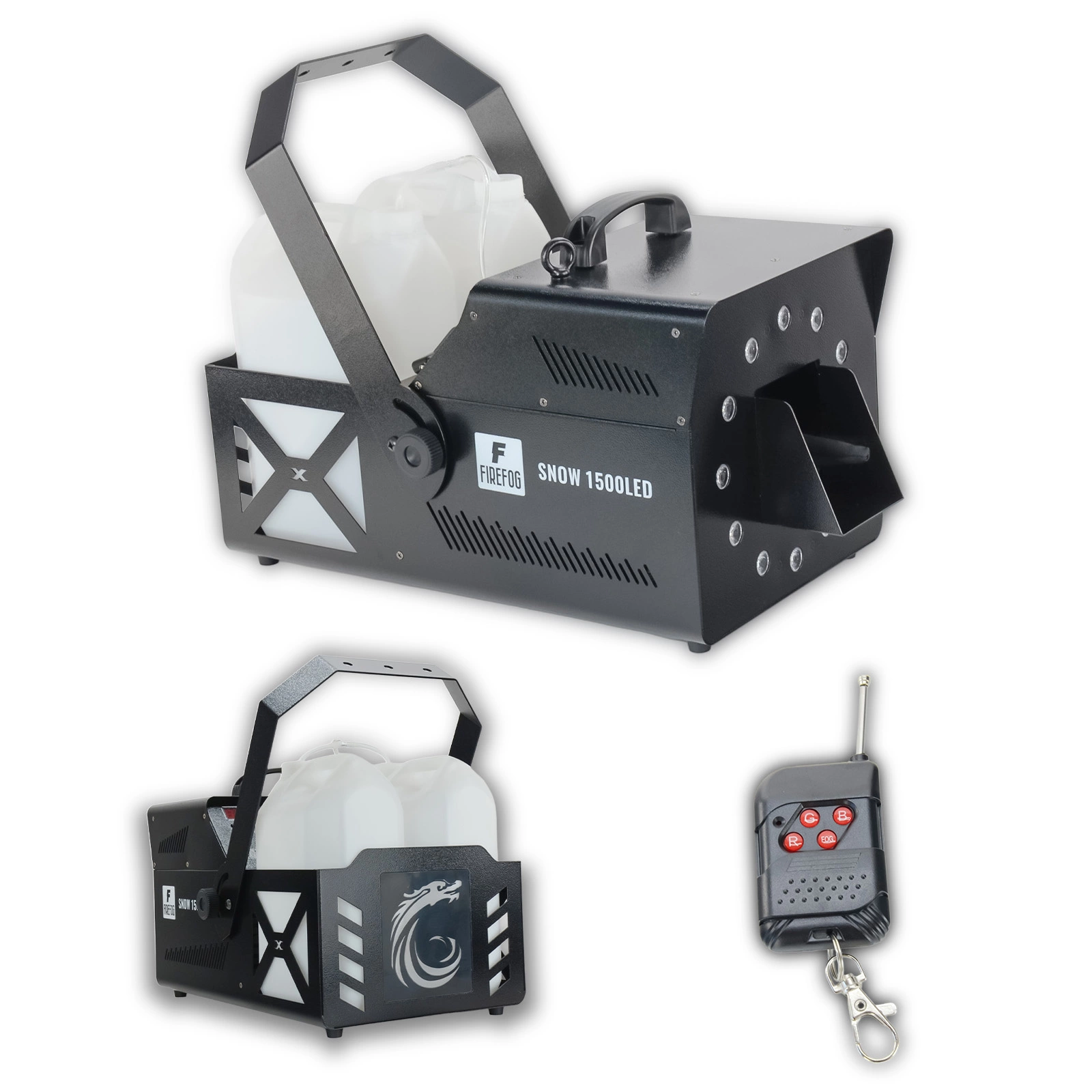 Mocna Wytwornica śniegu LED 1500W DMX pilot Firefog+ płyn do śniegu 5l