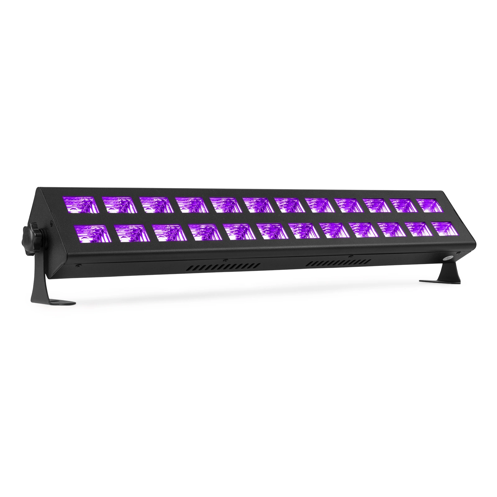Lampa UV z serii BUV firmy BeamZ posiada 24 wbudowane 3-watowe diody LED, które są wystarczająco mocne, aby można je było wykorzystać podczas różnych wydarzeń na małą i dużą skalę, ale są również idealne na imprezę świecącą w ciemności w kawiarni, dyskotece lub aby stworzyć upiorny efekt Halloween podczas domowej imprezy.
