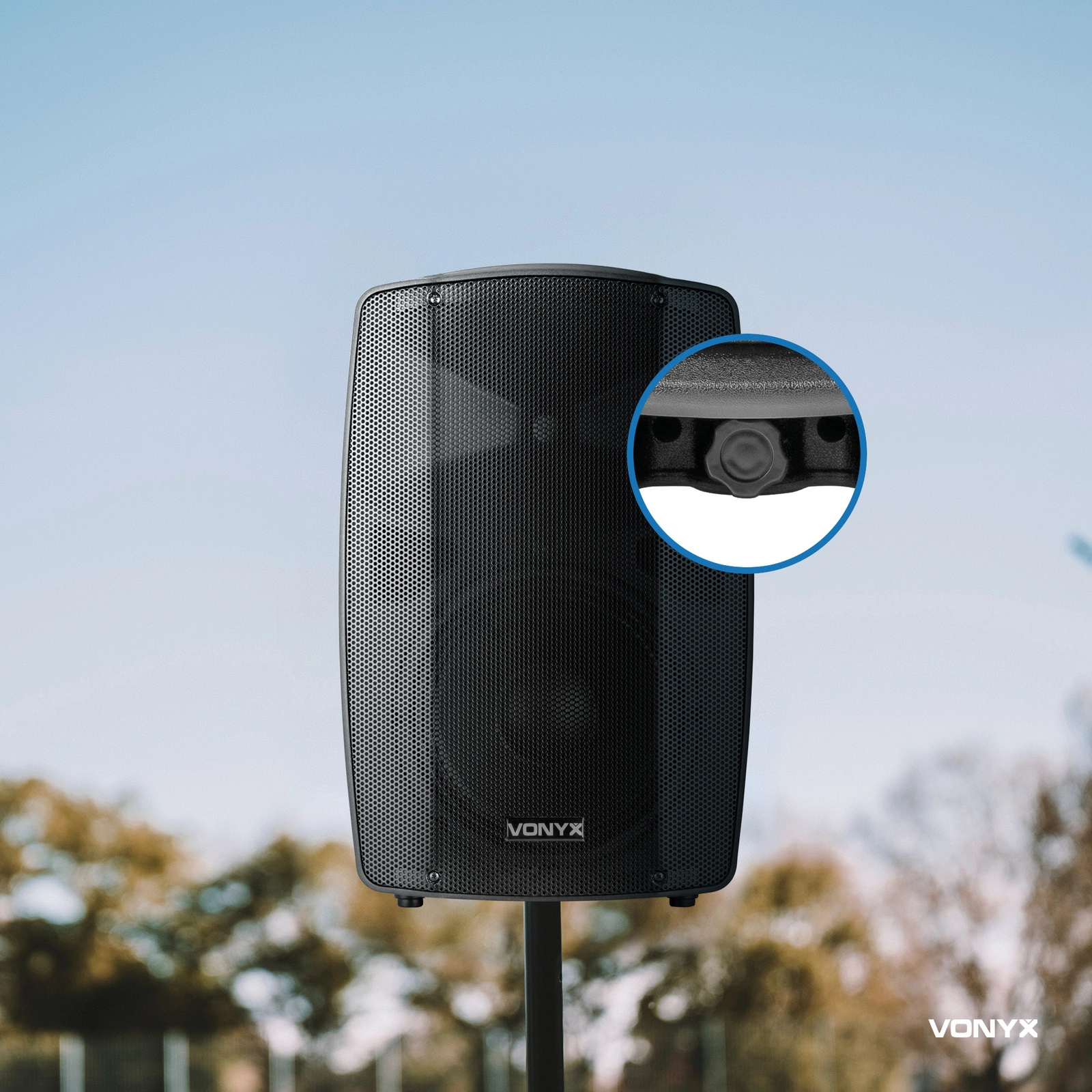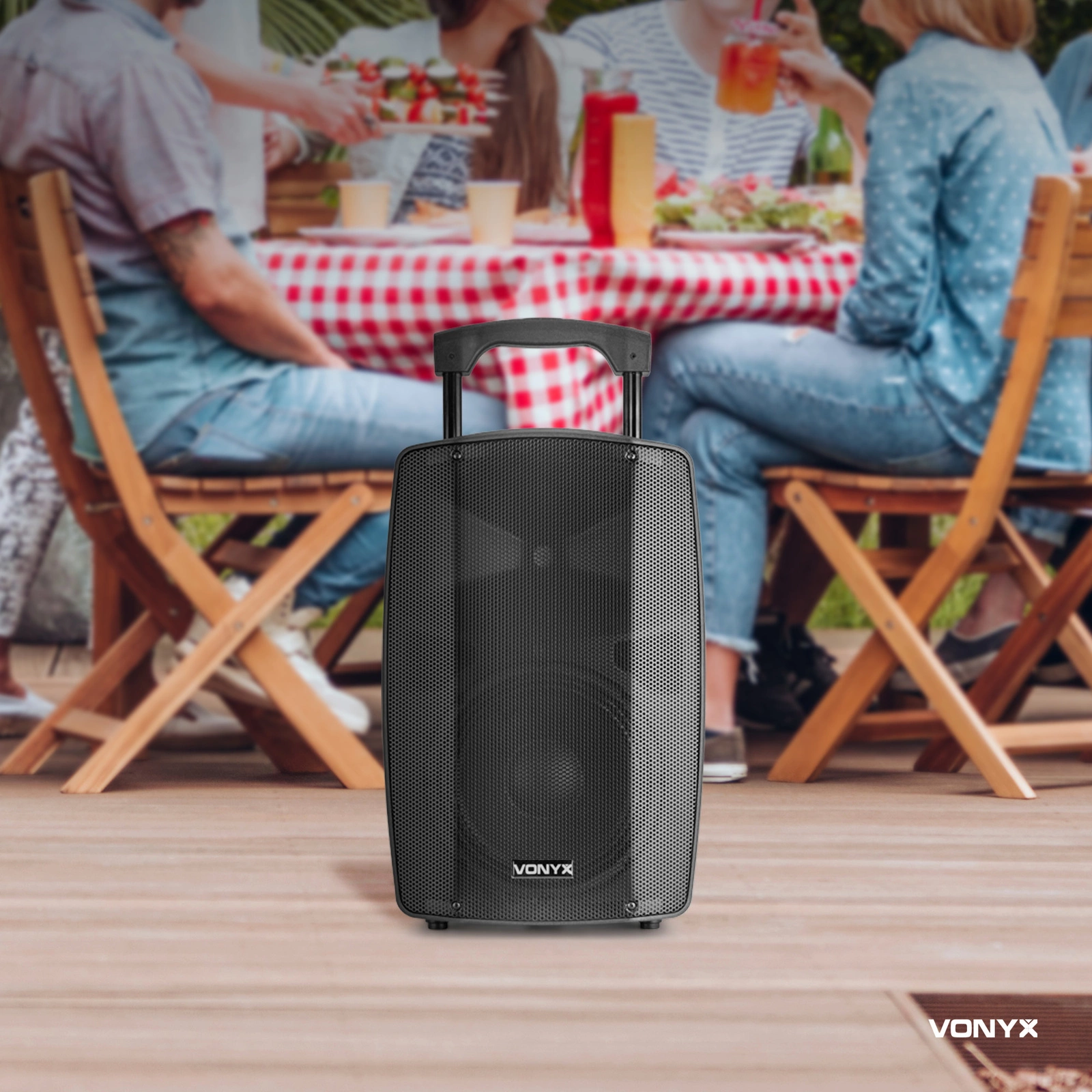 Dla dodatkowej wygody podczas transportu system ten jest zamknięty w solidnej obudowie. Dzięki wysuwanemu uchwytowi i kółkom możesz bez wysiłku zabrać Vonyx VSP200 w dowolne miejsce, aby odtwarzać muzykę.