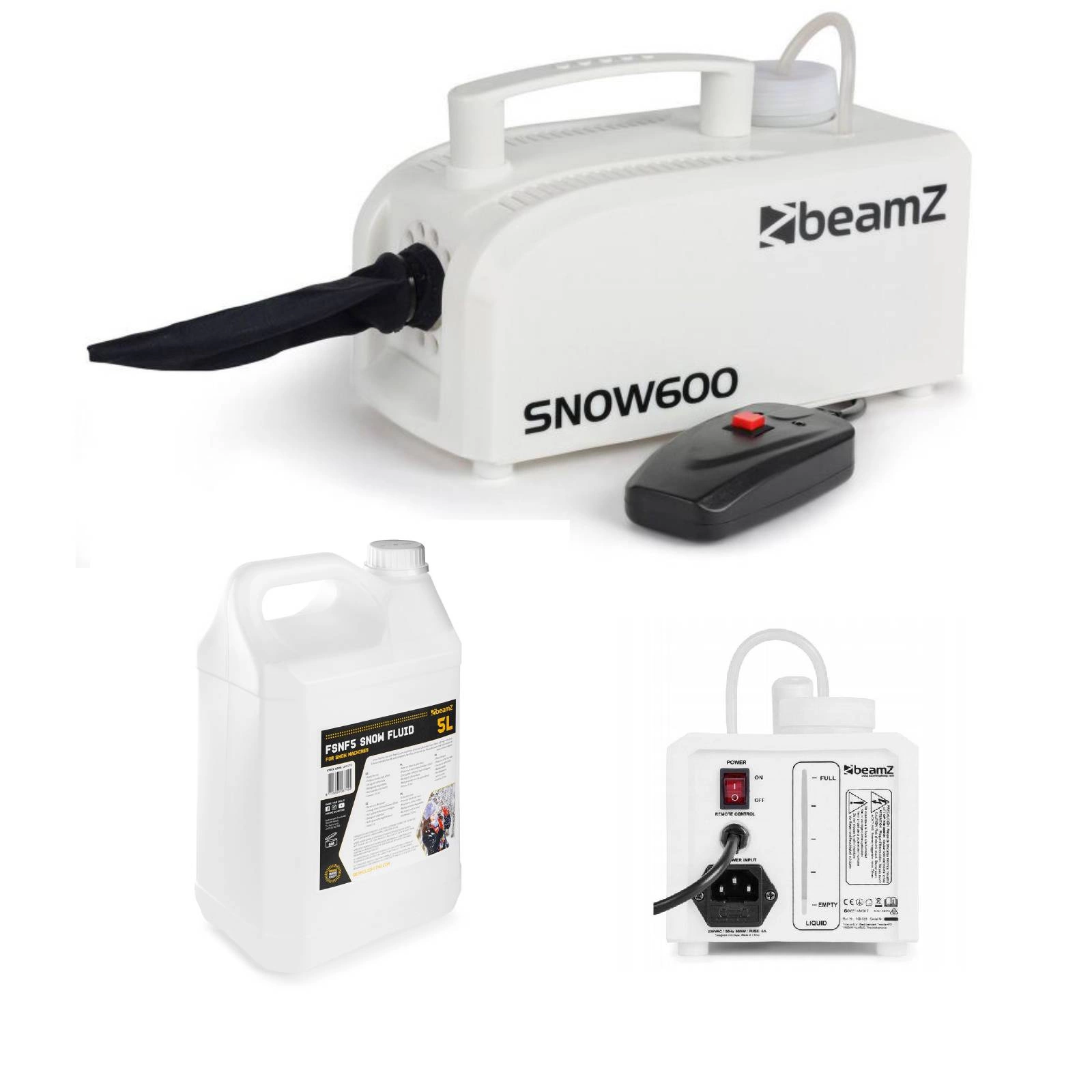 o mocy 600W marki BeamZ. Efektem tego urządzenia nie są klasyczne płatki śniegu, tylko lekko unosząca się, zwiewna piana, ale nie tak skumulowana jak w klasycznych maszynach do piany. Pianka długo utrzymuje się w miejscu gdzie opadnie, płaszczyzna nie robi się bardzo mokra i przy zastosowaniu dedykowanych płynów nie pozostawia plam. Zestaw zawiera pilota na 5m kablu, który umożliwia swobodne sterowanie maszyną z dogodnej odległości. Dzięki tej wytwornicy, niezależnie od pory roku uzyskamy niesamowity zimowy efekt z wirującymi dookoła płatkami śniegu. Idealna propozycja na niezapomniane imprezy, do klubów, na pokazy czy koncerty. Idealny do symulacji śniegu na przykład w szopce bożonarodzeniowej lub w schronisku narciarskim, klubie lub barze. SNOW600 może być również doskonale używany podczas przyjęć domowych, aby stworzyć przytulną zimową atmosferę.