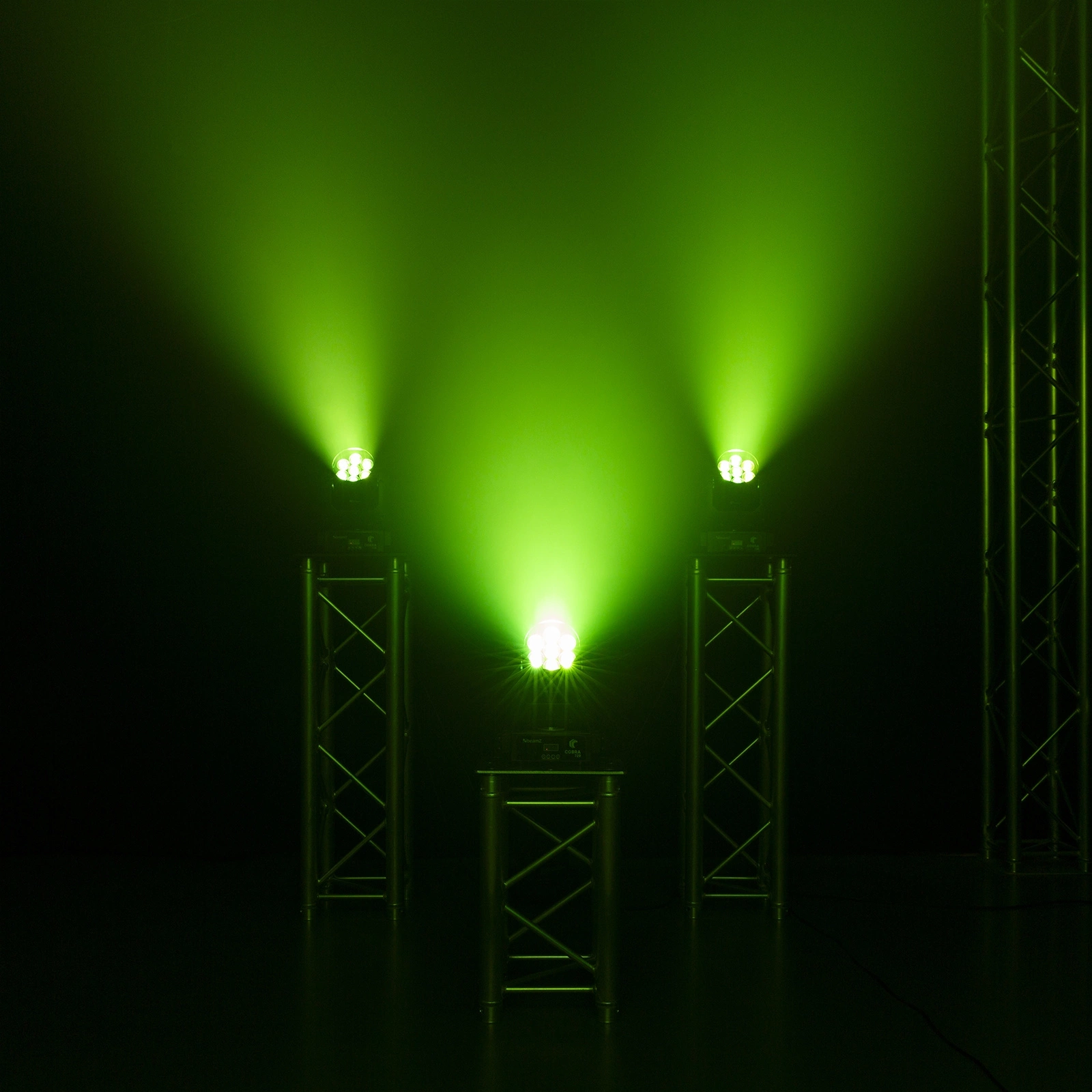 7 diod LED RGBW o mocy 20 W zapewnia naprawdę imponujący strumień świetlny. Dzięki takim funkcjom, jak liniowy zoom elektroniczny i elektroniczny ściemniacz, możesz stworzyć olśniewający pokaz świetlny na każdym wydarzeniu.