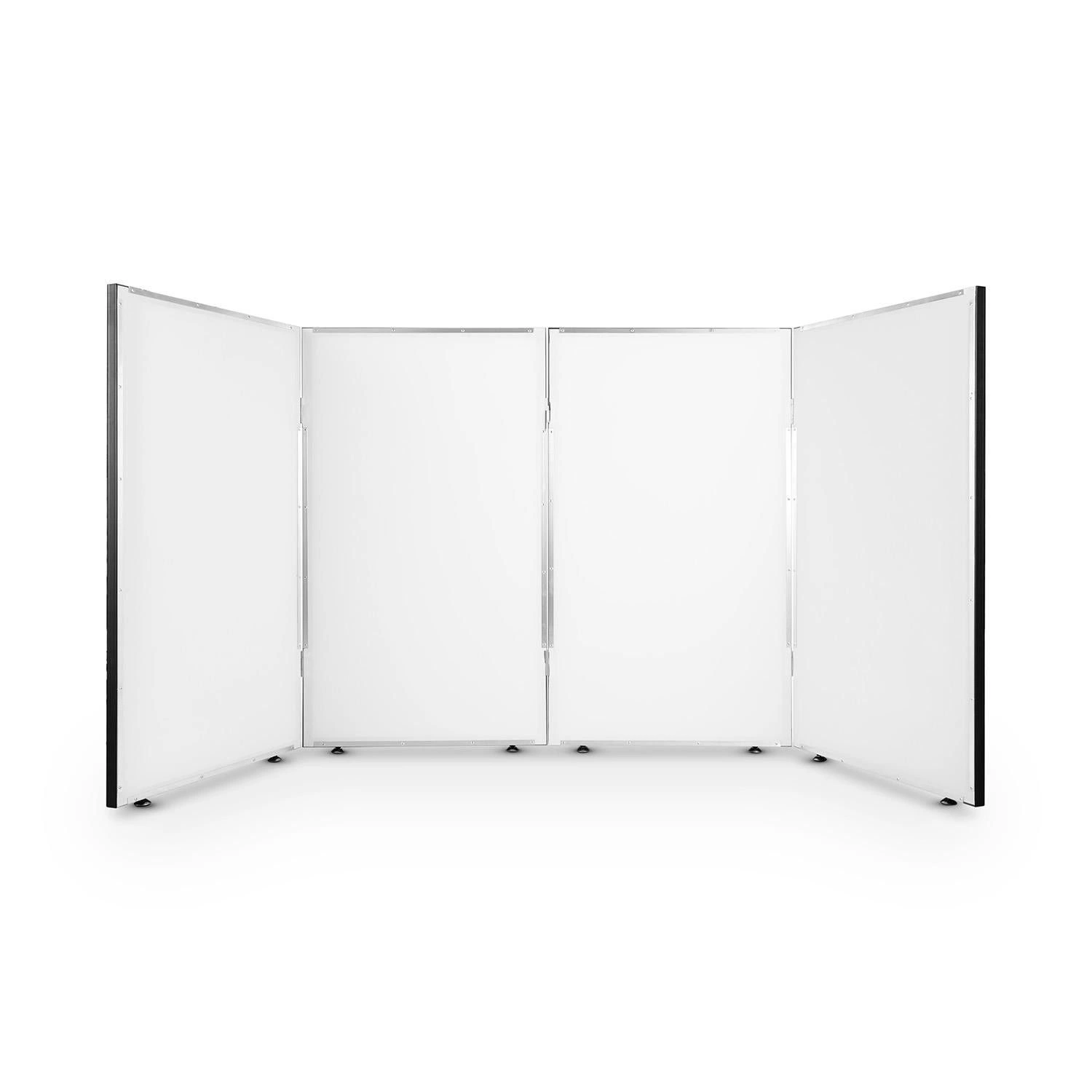 w którego skład wchodzą cztery, prostokątne elementy jest idealnym rozwiązaniem dla wielu artystów. Fasada pozwoli ukryć cały ekwipunek i jednocześnie stworzyć elegancki wygląd. Świetny dla każdego, kto szuka szybkiego i eleganckiego set-upu aby poprawić swoją oprawę wizualną. Lekka rama stalowa ma czarne wykończenie, które wygląda niesamowicie w połączeniu z materiałem Lycra. Panele wyposażone są w elastyczne tkaniny, które bardzo łatwo utrzymać w czystości.