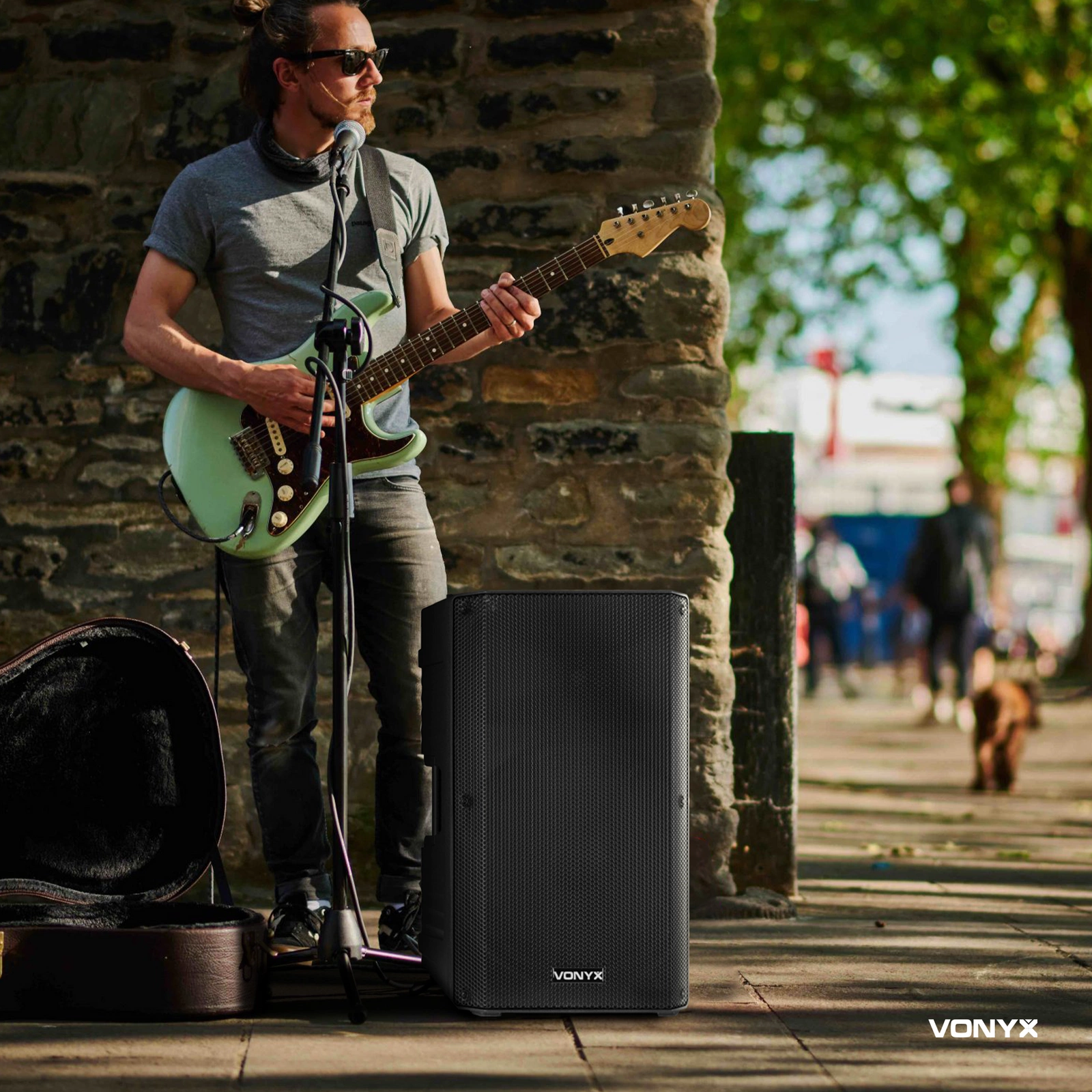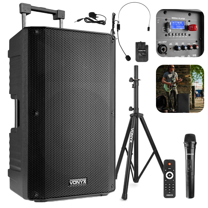 Seria Vonyx VSA to seria wysokiej jakości profesjonalnych przenośnych systemów audio 12” i 15”. Wbudowany wzmacniacz jest wyposażony w odbiornik BT, który umożliwia przesyłanie strumieniowe całej ulubionej muzyki ze smartfonu lub tabletu oraz port USB/gniazdo SD do odtwarzania plików MP3. Aby zawsze było jasne, co jest aktualnie odtwarzane, te systemy audio są wyposażone w przejrzysty wyświetlacz graficzny do wyświetlania znaczników ID3. Dzięki wbudowanemu akumulatorowi systemy te doskonale nadają się do zastosowań takich jak nagłośnienie i występy uliczne. VSA zawierają również 2 mikrofony UHF dla pełnej swobody.