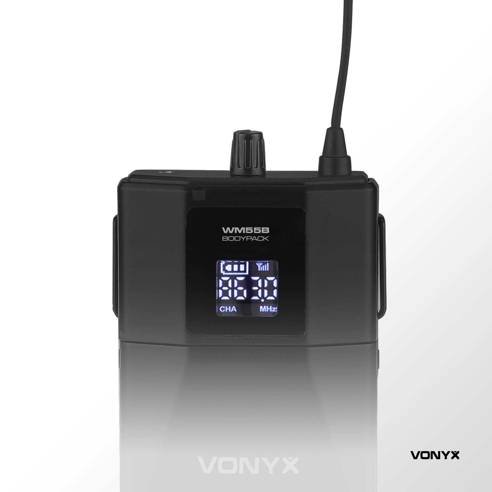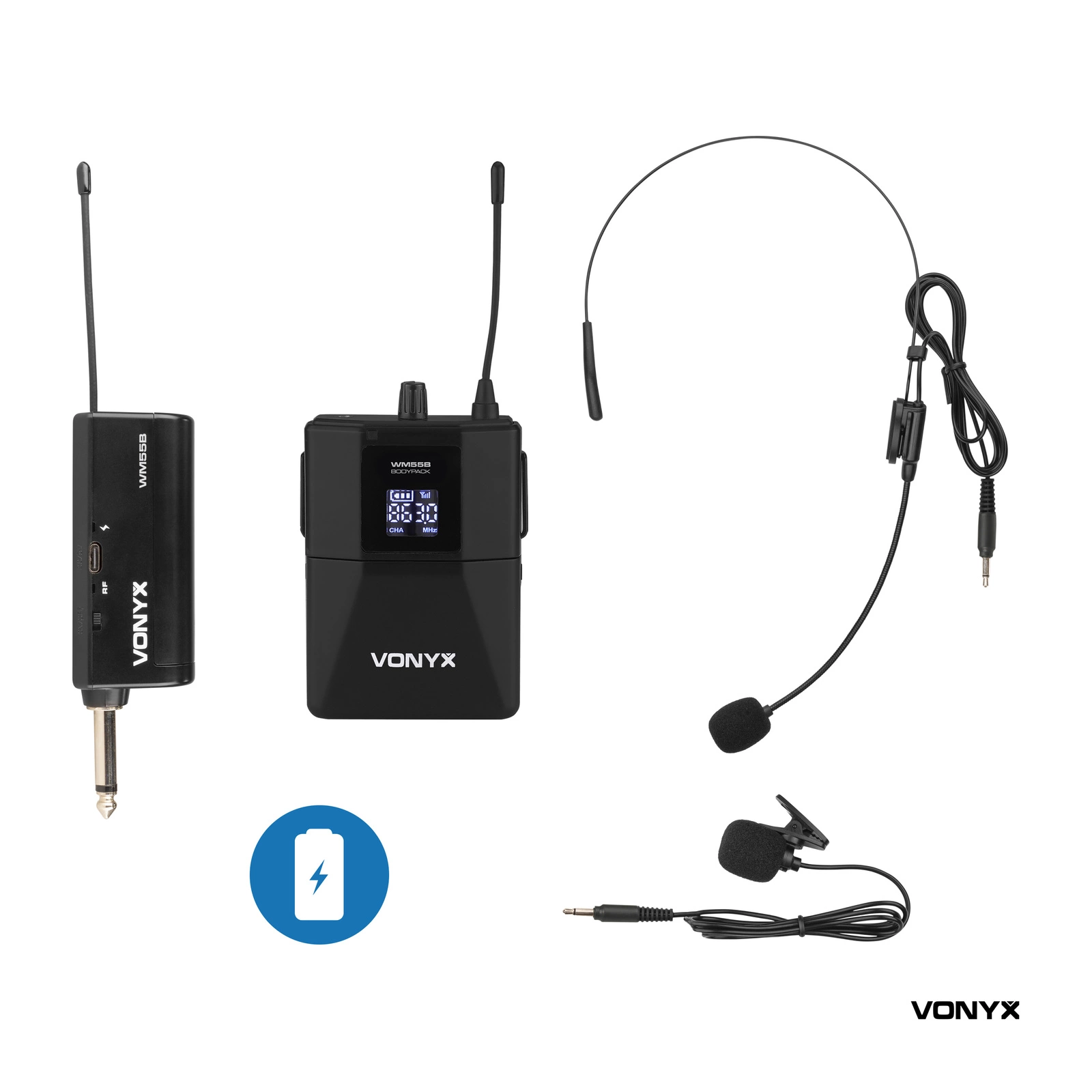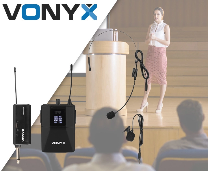 Ponieważ sam mikrofon jest bezprzewodowy, oprócz powyższych urządzeń można go łatwo podłączyć do głośnika imprezowego (pod warunkiem, że głośnik ma wejście Jack 6,3 mm). Ten mikrofon jest całkowicie typu plug-and-play! Dzięki Vonyx WM55B możesz wybierać pomiędzy mikrofonem nagłownym lub mikrofonem przypinanym do krawata. Dołączona do zestawu bateria jest wielokrotnego ładowania, dzięki czemu nie jesteś ciągle zależny od gniazdka. Dzięki 10 różnym kanałom, których częstotliwość można odczytać na cyfrowym wyświetlaczu odbiornika, zawsze masz kanał, na którym możesz po cichu śpiewać swoje ulubione piosenki.