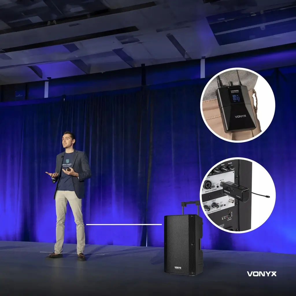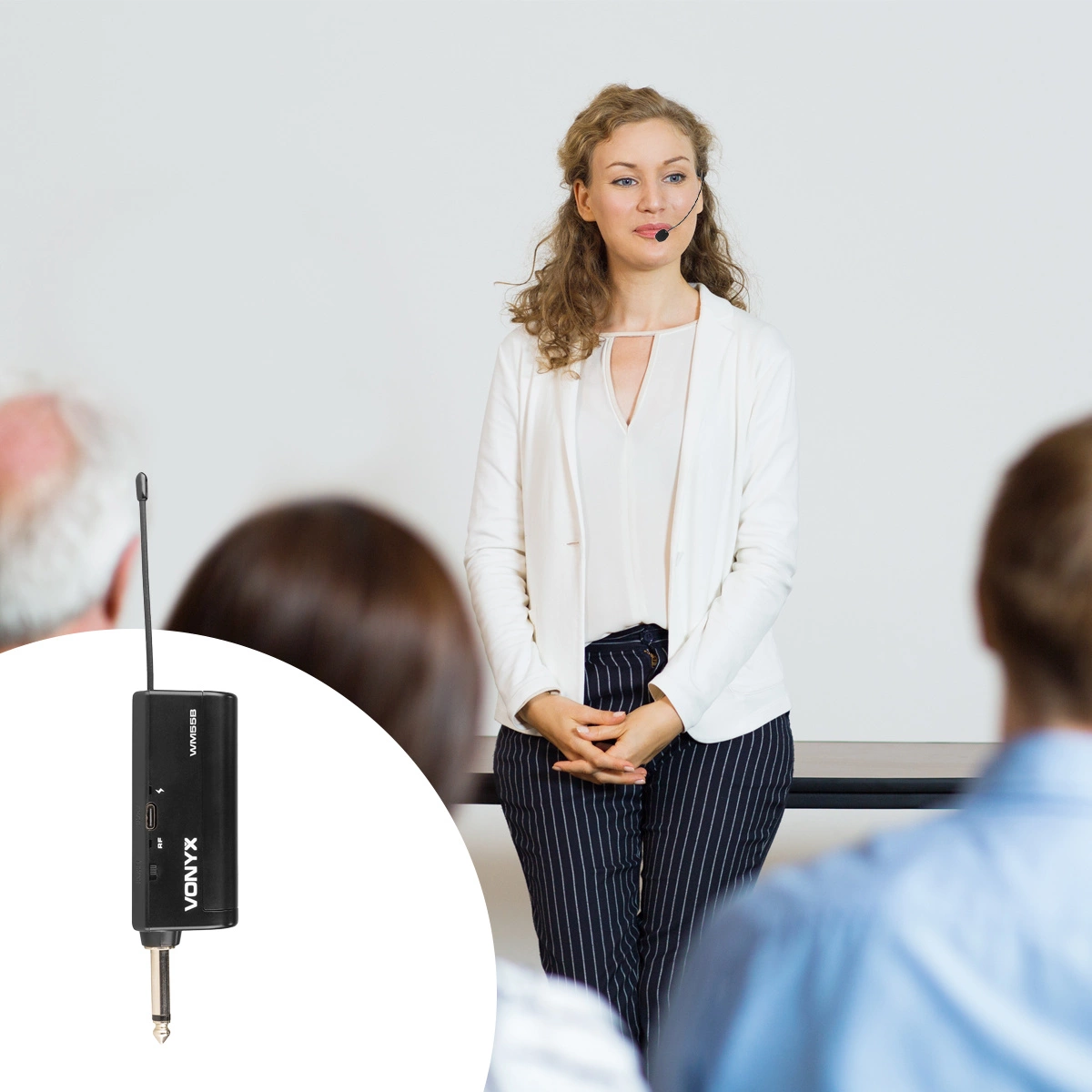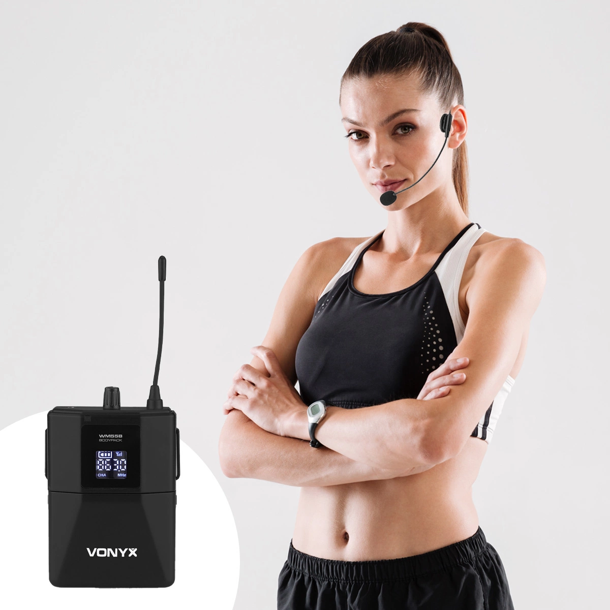 Ponieważ sam mikrofon jest bezprzewodowy, oprócz powyższych urządzeń można go łatwo podłączyć do głośnika imprezowego (pod warunkiem, że głośnik ma wejście Jack 6,3 mm). Ten mikrofon jest całkowicie typu plug-and-play! Dzięki Vonyx WM55B możesz wybierać pomiędzy mikrofonem nagłownym lub mikrofonem przypinanym do krawata. Dołączona do zestawu bateria jest wielokrotnego ładowania, dzięki czemu nie jesteś ciągle zależny od gniazdka. Dzięki 10 różnym kanałom, których częstotliwość można odczytać na cyfrowym wyświetlaczu odbiornika, zawsze masz kanał, na którym możesz po cichu śpiewać swoje ulubione piosenki.