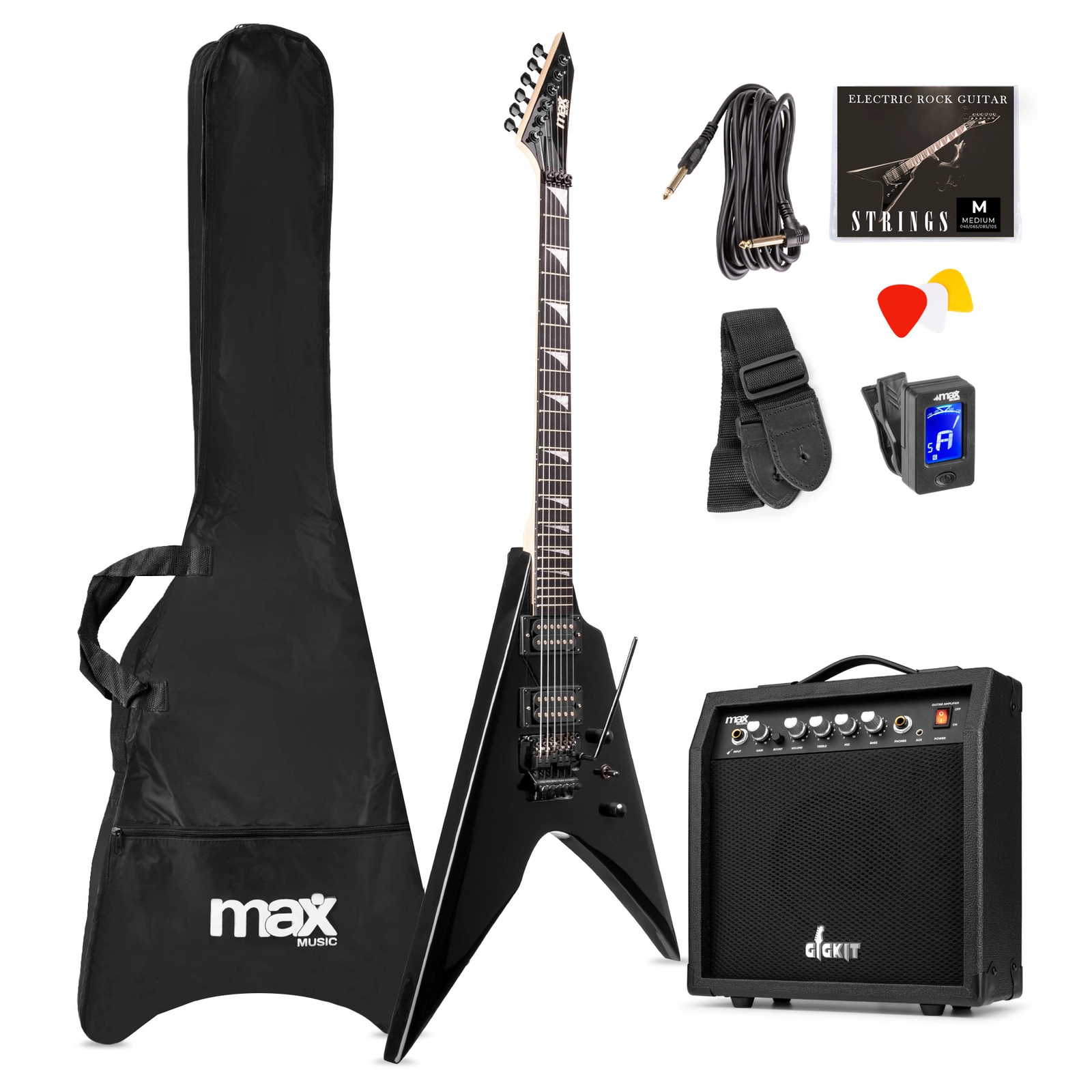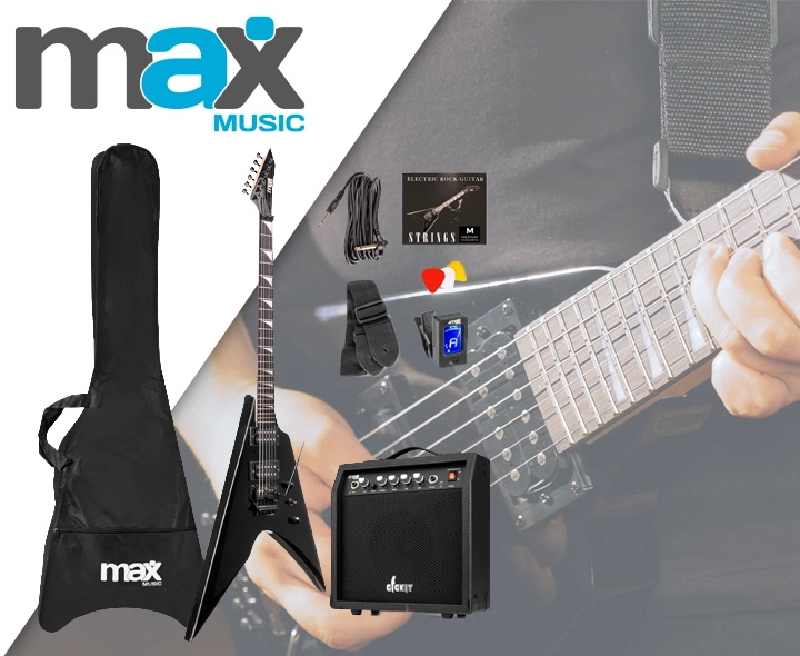 Zestaw Gitara elektryczna czarna typ V+ wzmacniacz pokrowiec tuner dodatki