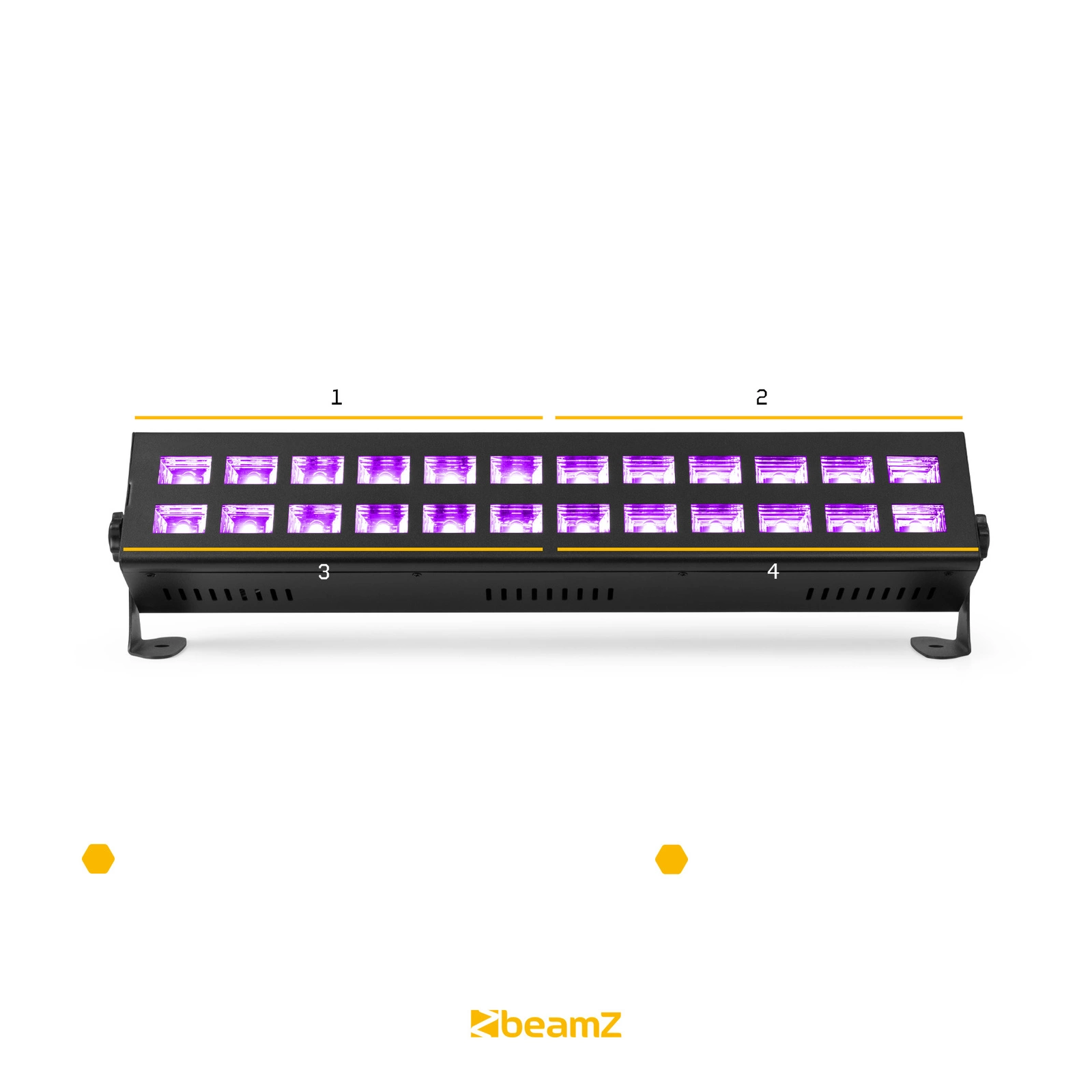 BUV243 to mocna i wydajna listwa LED wyposażona w wysokowydajne diody ultrafioletowe. Te 24 ultrafioletowe diody LED o mocy 3 W sprawią, że przedmioty i ludzie „świecą w ciemności”. Pełna integracja DMX, funkcja Sound-to-Light za pośrednictwem zintegrowanego mikrofonu, a także tryb Master/Slave spełnią wszystkie Twoje potrzeby! Nadaje się do wszelkiego rodzaju pokazów i wydarzeń.