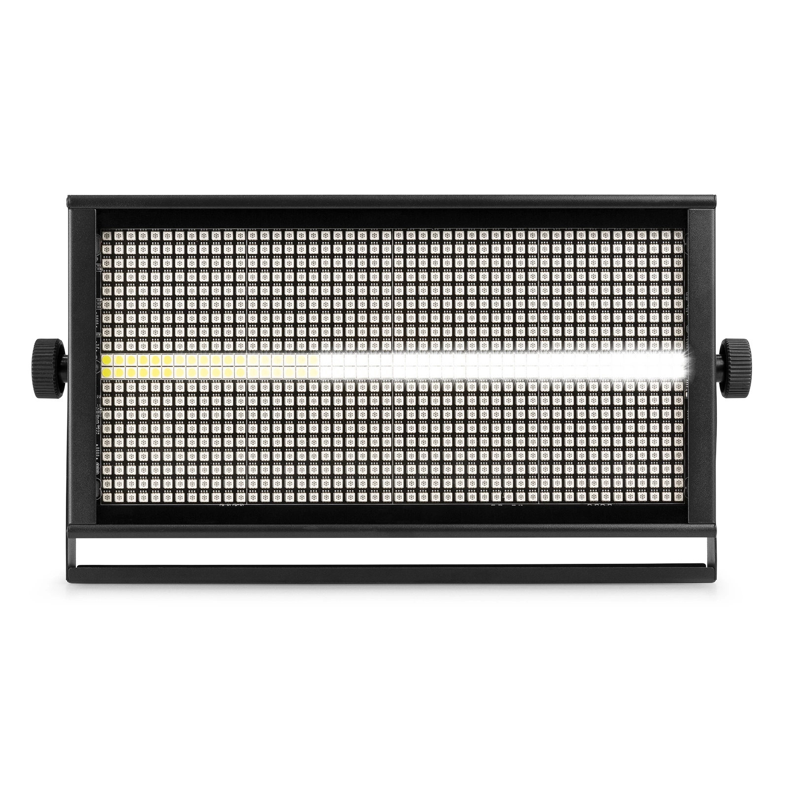 BS960 to potężne, wielofunkcyjne urządzenie, specjalnie zaprojektowane do stosowania jako stroboskop, blinder lub wash, dzięki diodom LED 960 SMD. Panel LED jest podzielony na różne sekcje i może migać w dowolnym kolorze dzięki systemowi mieszania RGB. Oprawa ta jest również wyposażona w pasek 96 białych diod LED SMD pośrodku oprawy, sterowanych w różnych sekcjach, aby stworzyć tradycyjny wygląd stroboskopu. Sterowanie jest łatwe poprzez DMX lub w trybie autonomicznym z funkcją automatyczną. Nadaje się do wszelkiego rodzaju pokazów i wydarzeń. Model BS960 został specjalnie zaprojektowany do stosowania na scenie, gdzie można używać jednego przedmiotu przy wielu okazjach.