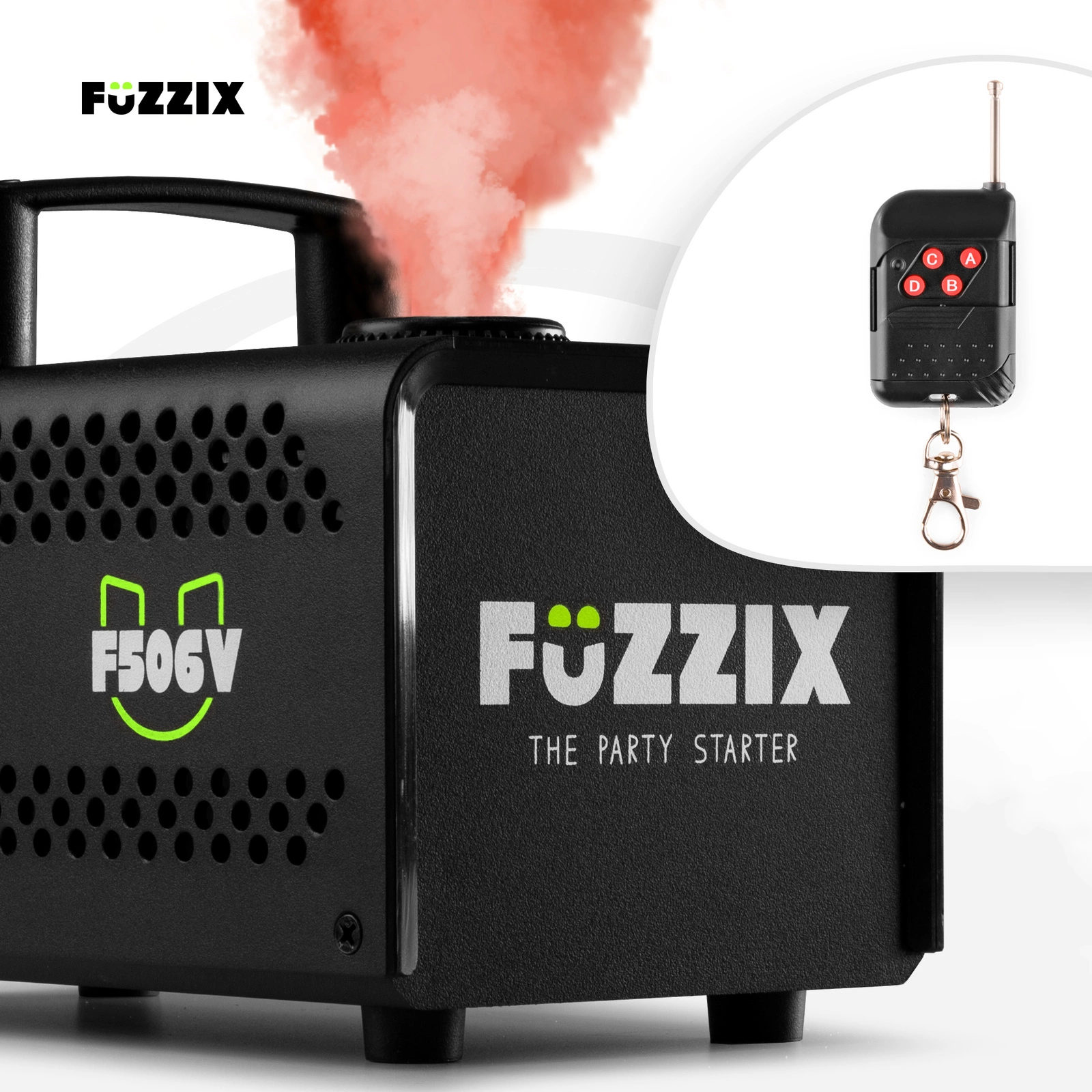 Fuzzix F506V wyróżnia się tym, że generuje pionowy dym. Ta maszyna do dymu ma moc 500 watów i w mgnieniu oka wytwarza gęste słupy dymu. Wytwornica dymu F506V jest wyposażona w 6 diod LED RGB zapewniających piękne efekty. Od zimnego startu wytwornica dymu potrzebuje około 2,5 minuty na rozgrzanie, a ponowne nagrzewanie pomiędzy nimi trwa około 30 sekund. Zielony/czerwony wskaźnik LED z tyłu ułatwia sprawdzenie, kiedy wytwornica dymu jest gotowa do użycia.
