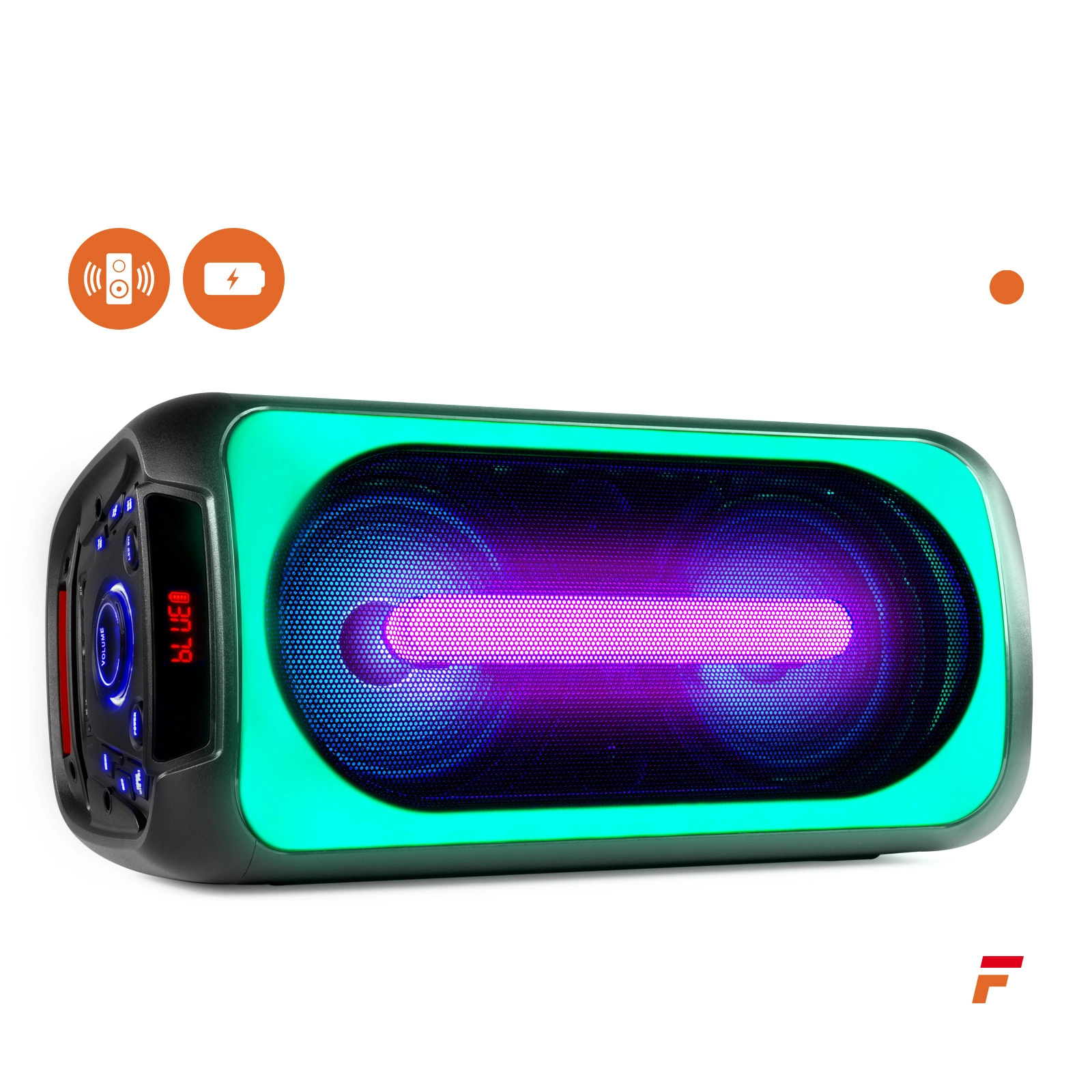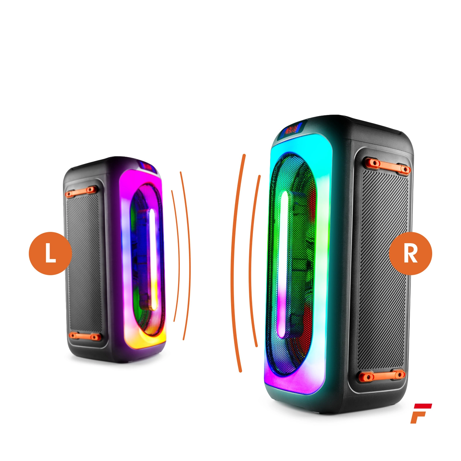 Połącz bezprzewodowo dwa głośniki w celu parowania stereo. W ten sposób możesz cieszyć się dwukrotnie większym dźwiękiem i jeszcze większą zabawą na imprezie. I nie tylko podwaja się dźwięk, ale także możesz cieszyć się podwójnym pokazem świetlnym!