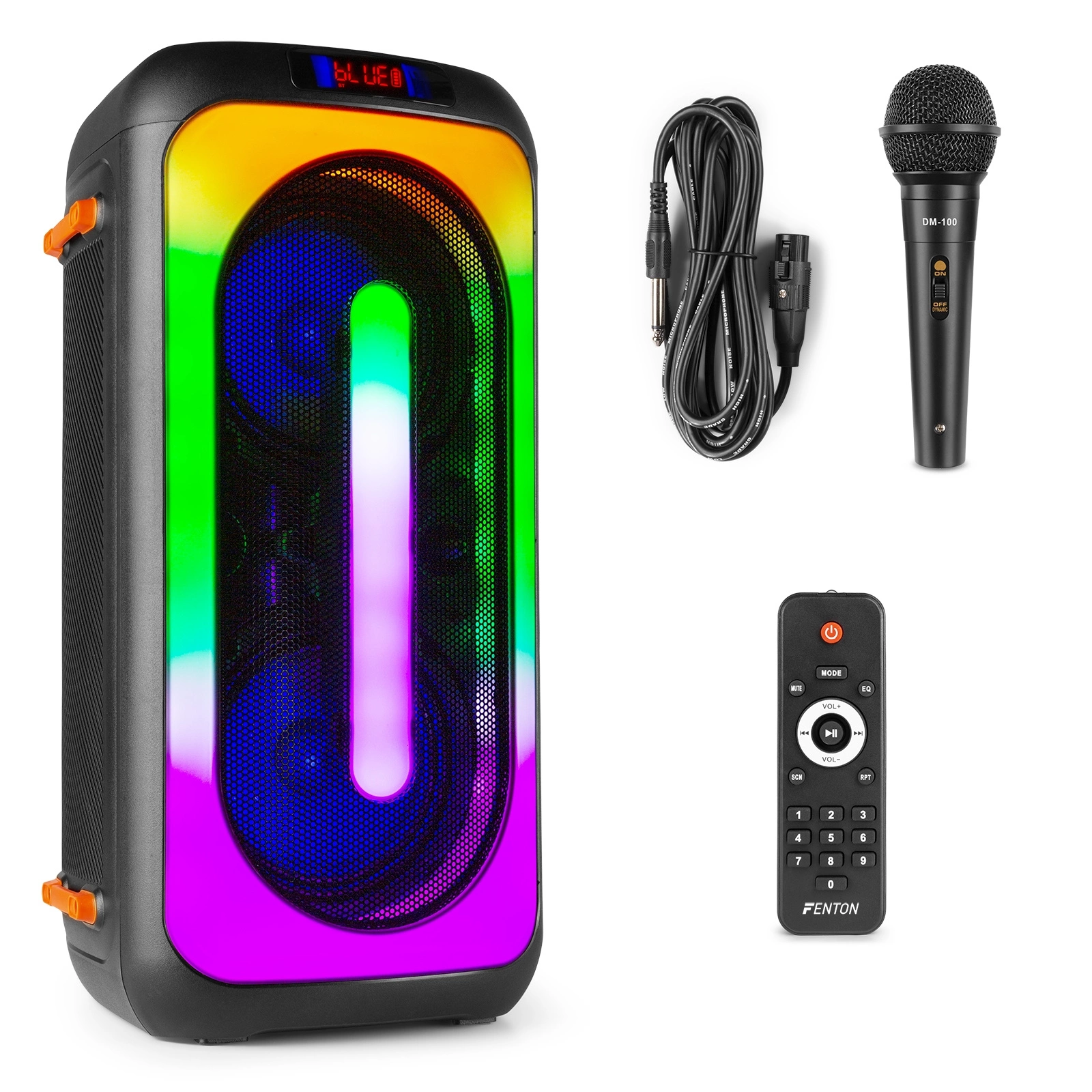 Dzięki party boxowi BoomBox400 masz nie tylko dźwięk, ale także światło! Dzięki temu masz kompletny zestaw imprezowy. BoomBox400 ma wbudowaną baterię, co pozwala na swobodę w wyborze miejsca, w którym chcesz zorganizować imprezę. Oprócz głośnika imprezowego BoomBox400 może oczywiście służyć również jako przenośny głośnik Bluetooth. W ogrodzie, na plaży czy na kempingu... wbudowany akumulator pozwala zabrać ze sobą ulubioną muzykę, dokądkolwiek się udasz. Oprócz Bluetooth posiada również wbudowany odtwarzacz MP3, dzięki czemu możesz odtwarzać własną playlistę bezpośrednio z pamięci USB lub karty micro SD. W zestawie znajduje się mikrofon i pilot zdalnego sterowania, dzięki czemu możliwe jest również karaoke. BoomBox400 firmy Fenton to wszechstronny mobilny system dźwiękowy, który można wykorzystać do wszelkiego rodzaju zastosowań muzycznych.