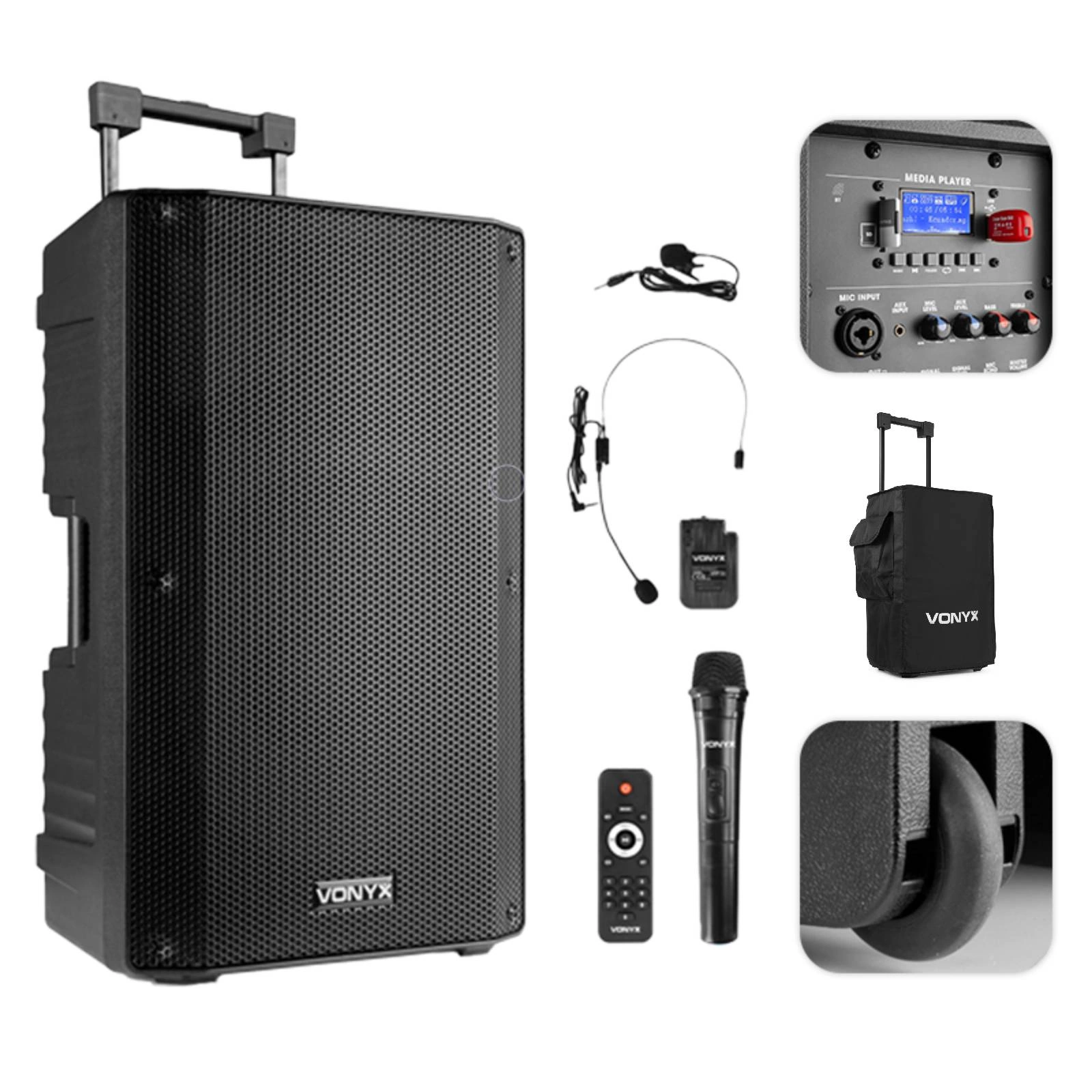Seria Vonyx VSA to seria wysokiej jakości profesjonalnych przenośnych systemów audio 12” i 15”. Wbudowany wzmacniacz jest wyposażony w odbiornik BT, który umożliwia przesyłanie strumieniowe całej ulubionej muzyki ze smartfonu lub tabletu oraz port USB/gniazdo SD do odtwarzania plików MP3. Aby zawsze było jasne, co jest aktualnie odtwarzane, te systemy audio są wyposażone w przejrzysty wyświetlacz graficzny do wyświetlania znaczników ID3. Dzięki wbudowanemu akumulatorowi systemy te doskonale nadają się do zastosowań takich jak nagłośnienie i występy uliczne. VSA zawierają również 2 mikrofony UHF dla pełnej swobody.