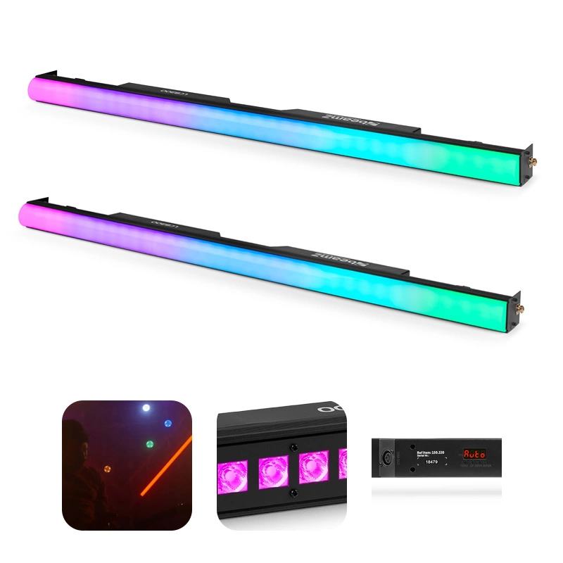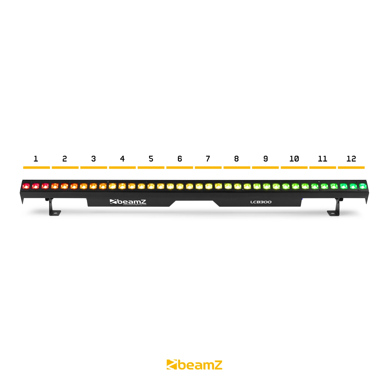 Ta belka LED jest bardzo odpowiednia do oświetlania scen, ścian lub innych dużych obiektów pięknymi efektami świetlnymi. Łącząc ze sobą kilka jednostek, można uzyskać jeszcze piękniejszy efekt. Łączenie kilku jednostek jest również bardzo proste. Można to łatwo zrobić za pomocą kabla Powercon lub DMX. Ta belka LED ma 12 różnych sekcji, co oznacza, że co 3 diody LED mogą tworzyć oddzielne efekty. Może to na przykład nadać belce LED falujący efekt. LCB300 od BeamZ jest dostarczana z tzw. 'cover tube', aby nadać belce LED rozproszony efekt. Diody LED można następnie liniowo ściemniać, co oznacza, że oświetlenie można płynnie i stopniowo ściemniać od 0 do 100%.