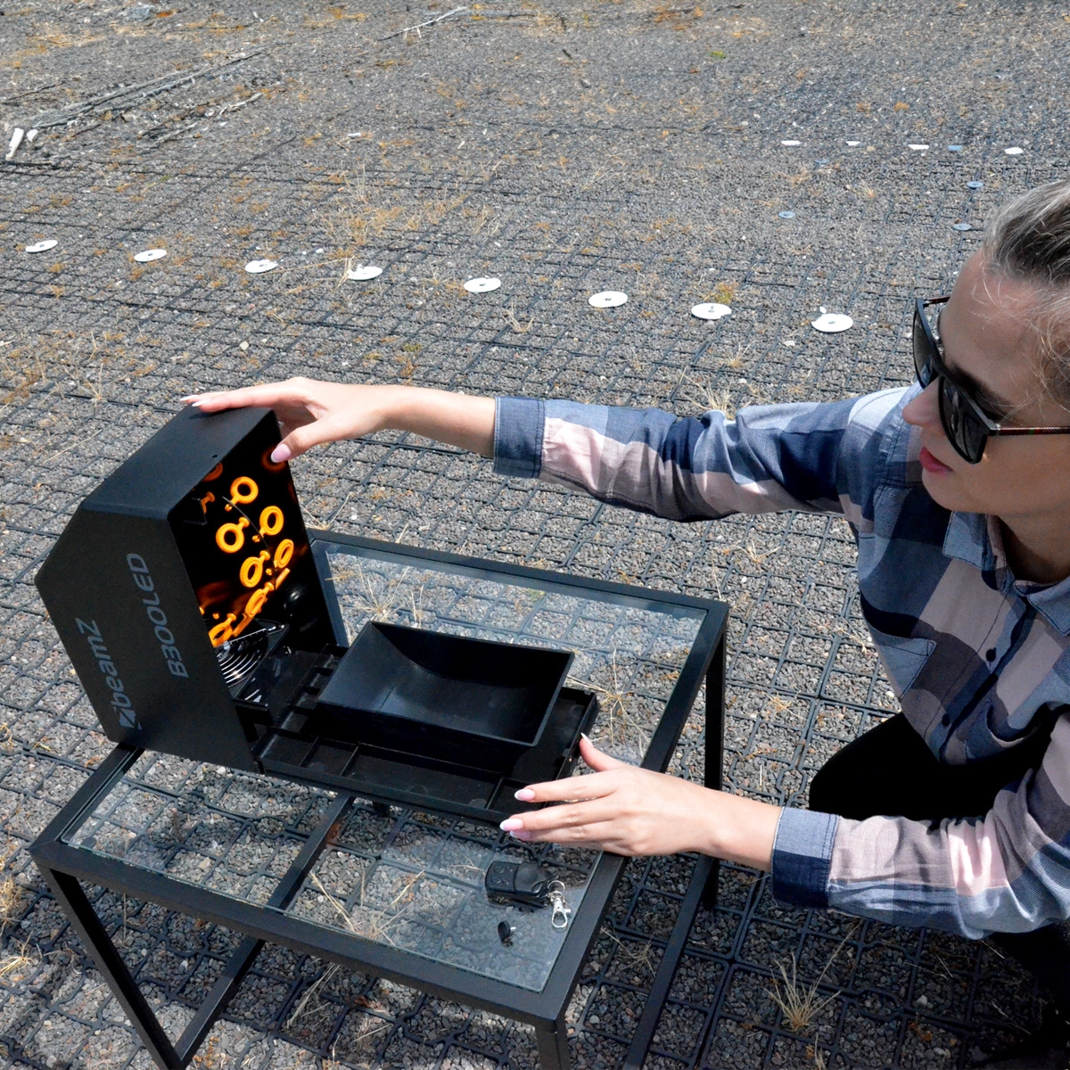 B300LED to innowacyjna, lekka i niezawodna maszyna do baniek mydlanych, idealna dla każdego rodzaju wydarzeń – od kameralnych spotkań po duże imprezy. Dzięki mocnemu wentylatorowi, B300LED tworzy oszałamiający wirujący efekt, generując ogromne ilości baniek na minutę. Wyposażona w trzy potężne diody LED RGB o mocy 3W każda, w kolorach czerwonym, zielonym i niebieskim, ta maszyna nie tylko tworzy bańki, ale także dodaje niesamowite efekty świetlne, które wzbogacą każde wydarzenie.